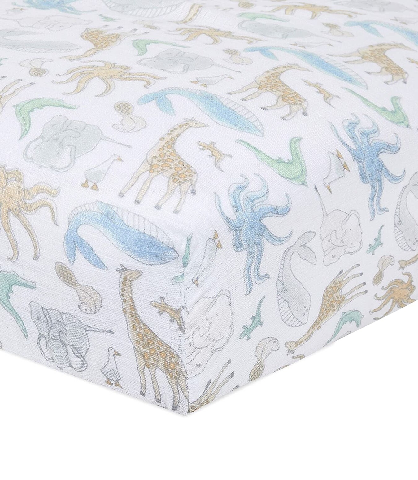 Made from 100% cotton muslin, our soft breathable crib sheet will keep your baby warm in the winter and cool in the summer. Machine washable, the fitted sheet fits standard crib mattresses and stays soft wash after wash.