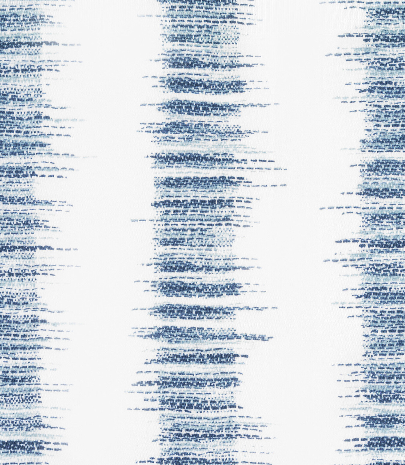 Attleboro, a print drawn from an archival Schumacher design, mimics the distinctive look of dyed textiles; here, Ikat-like blurred strokes are arranged in hazy stripes and printed on our Luca percale.