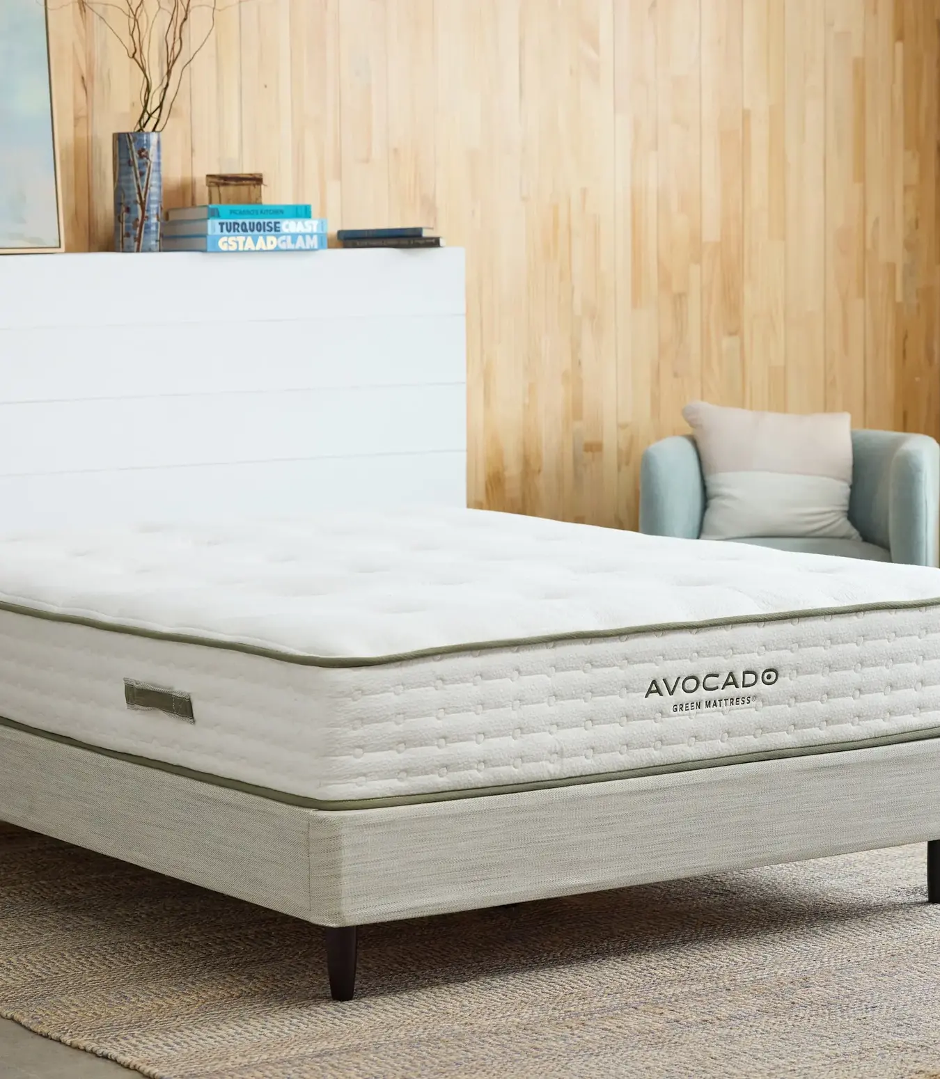 Our Avocado Green Mattress Foundation with legs features solid wood and a sturdy cotton-poly woven cover. The foundation's clean, seamless design perfectly complements and supports our mattresses. Consistent with our broader company values, we build our foundation to align with healthy and sustainable practices.