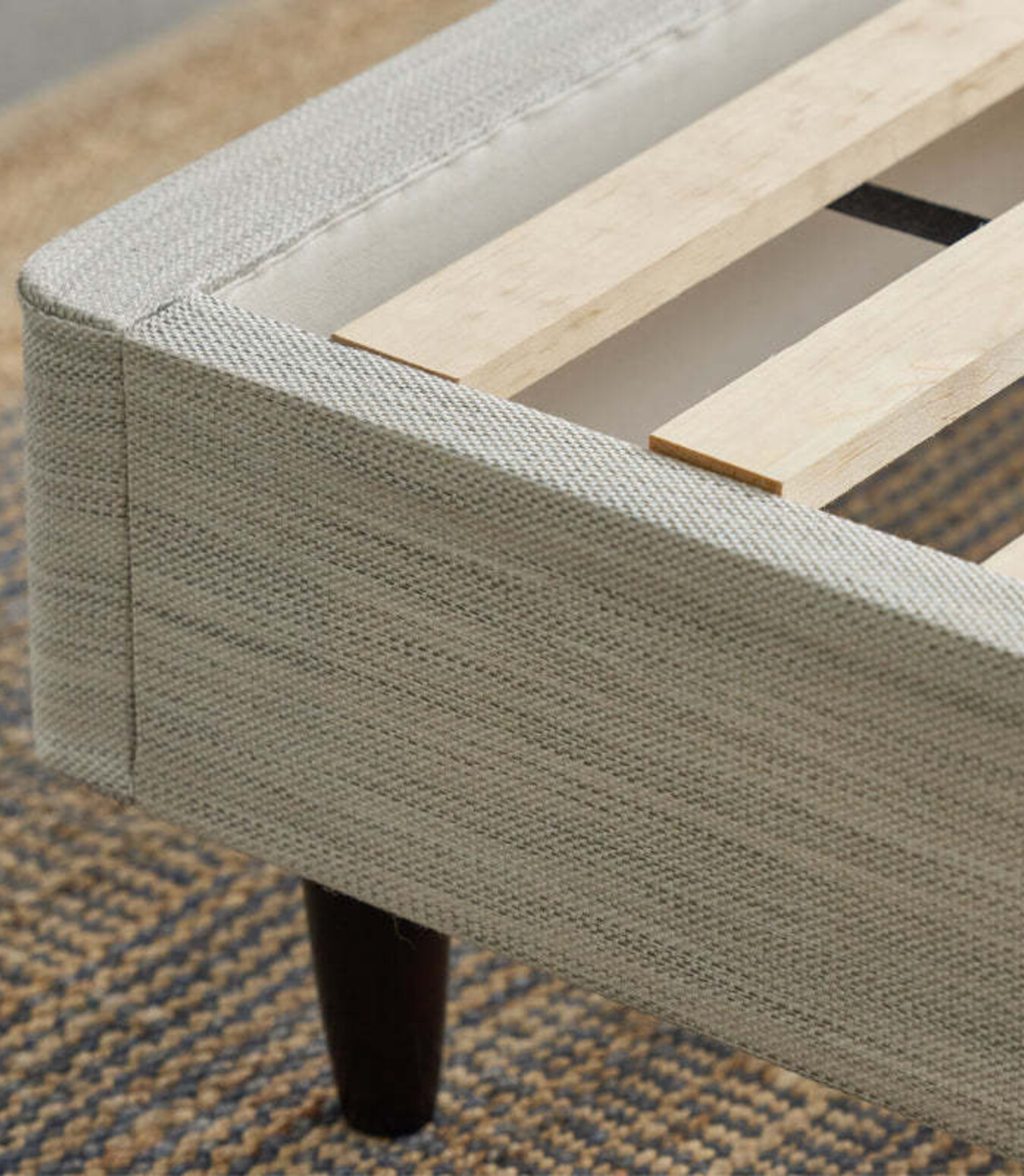 Our Avocado Foundation with legs works as a standalone bed frame. With its clean design and tool-free assembly, the foundation provides lasting support and maximizes airflow with slats placed 3.25 inches apart. Our foundation