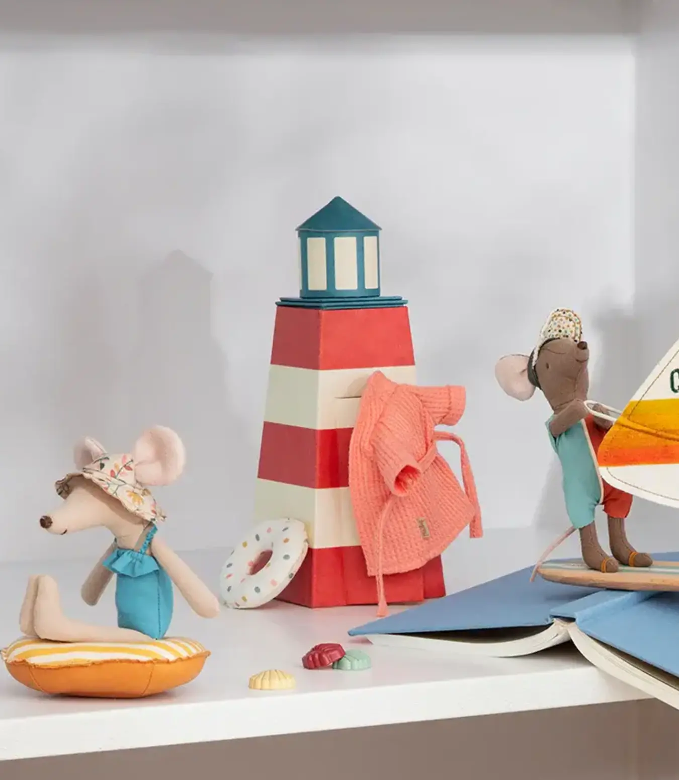 Our bathrobe is the perfect size for mum and dad size mice. The super soft fabric is perfect to get comfy on the beach, or for bed!