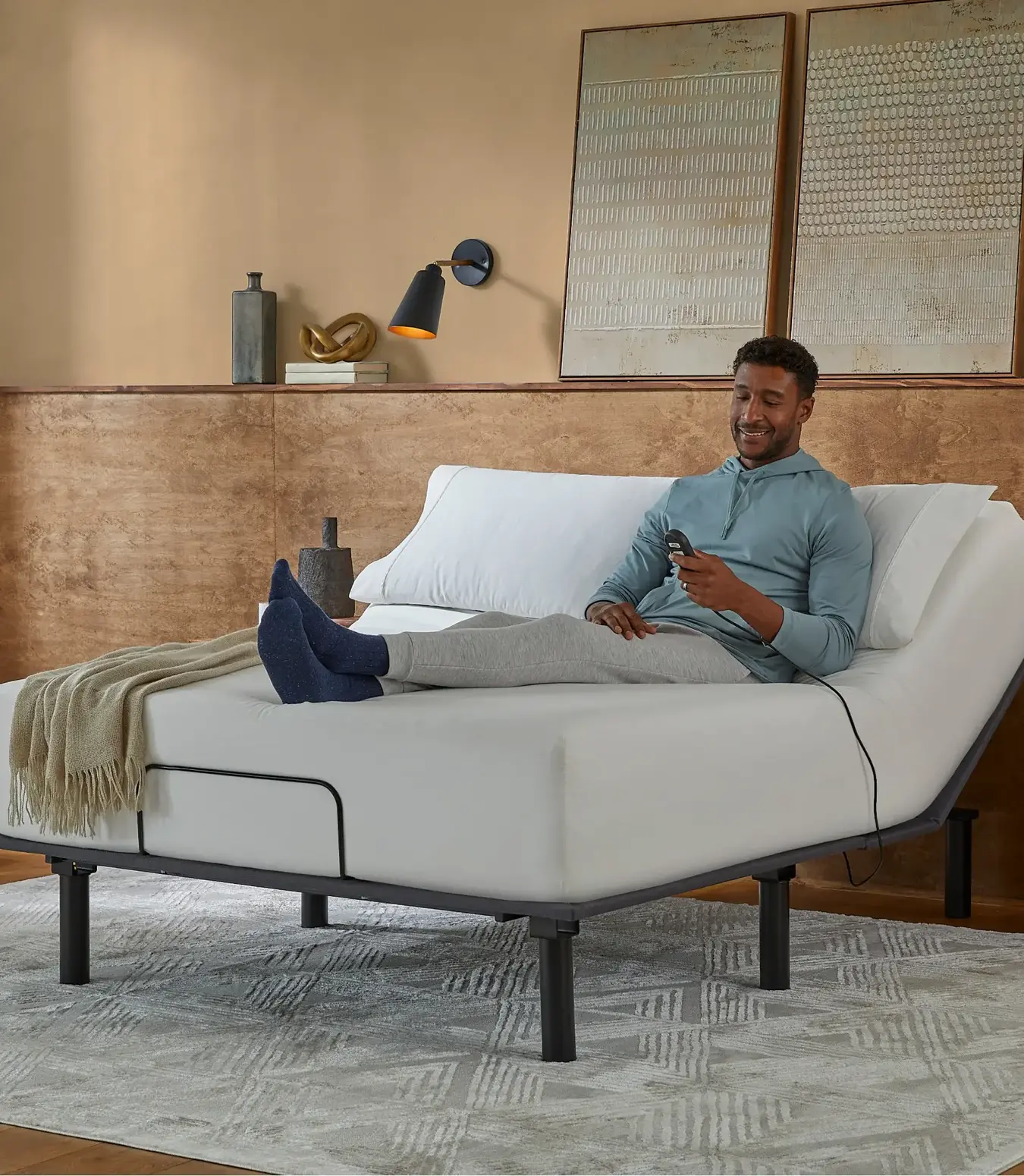 - Wireless remote - Control your position with a hand-held remote featuring a soft-touch finish
