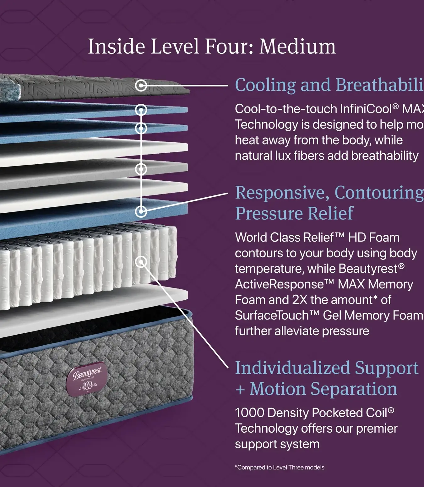 *Compared to Beautyrest® World Class™ Level One models