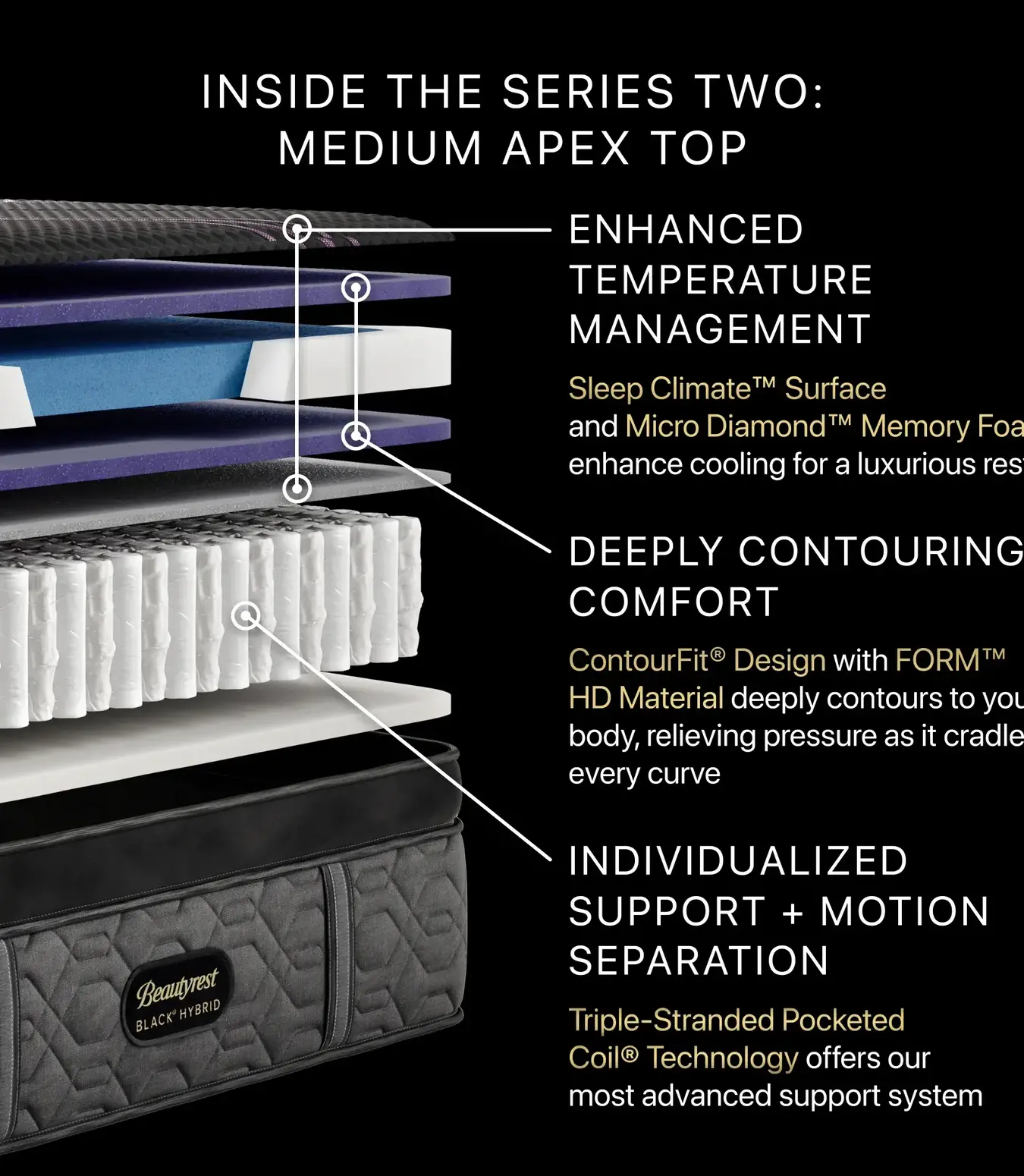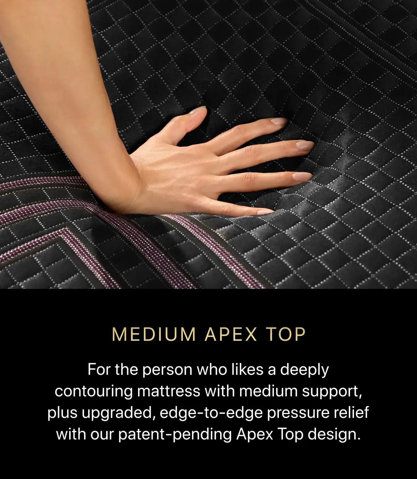Offers advanced, individualized support and motion separation, enhanced cooling features, and foam upgrades for a deeply contouring feel.