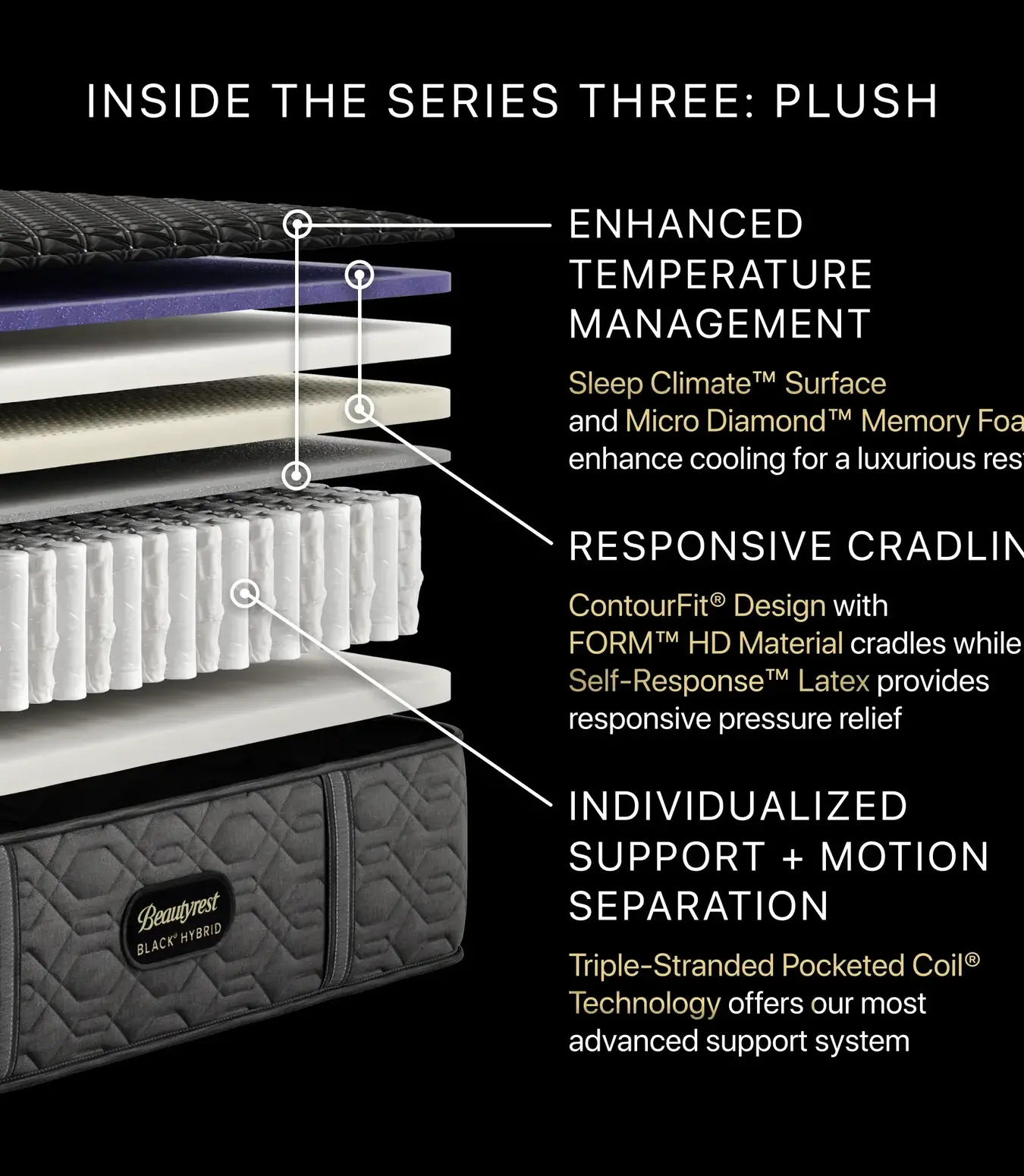 Experience the best of both worlds, with Triple-Stranded Pocketed Coil® Technology + Specialty Foams for individualized support and motion separation with a contouring feel..