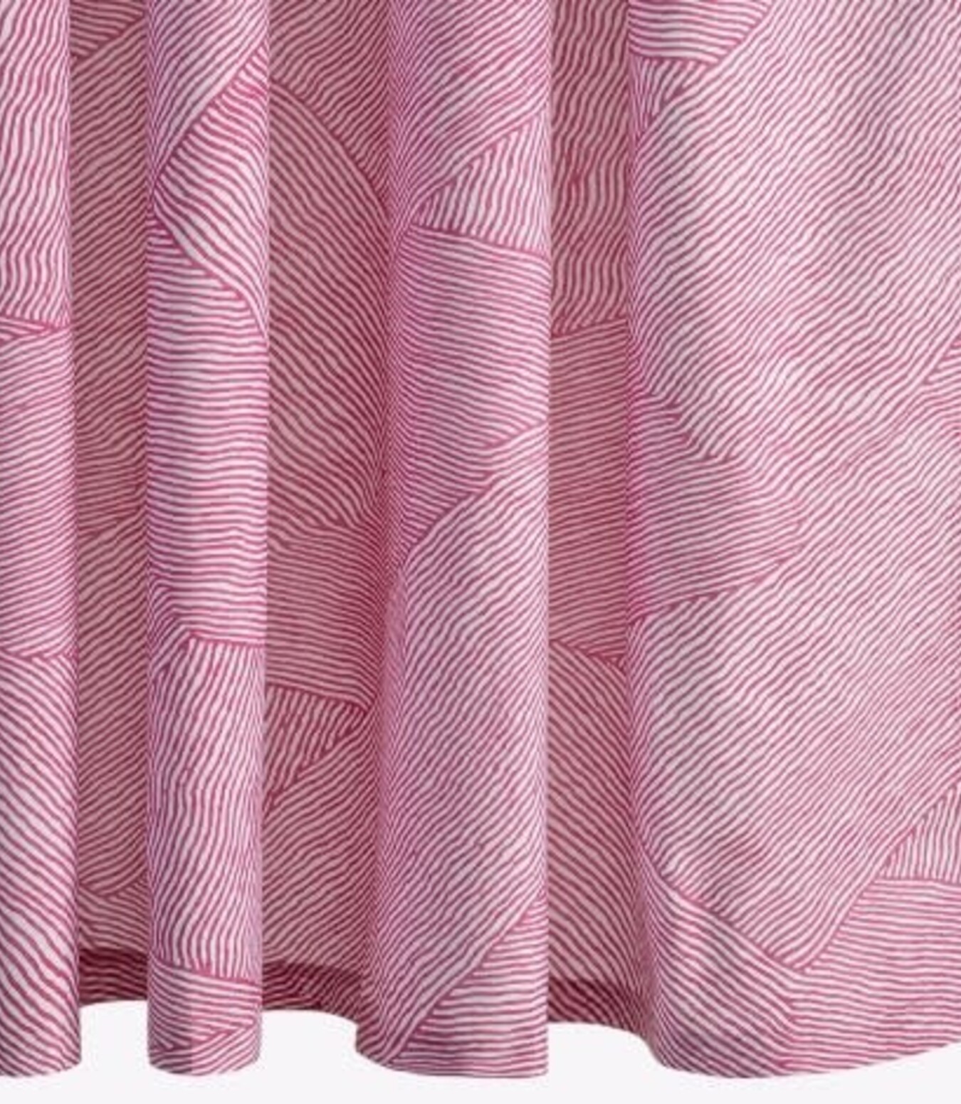 A Schumacher original pattern, Burnett’s brushstroke design is printed on our Luca percale and creates a versatile, sophisticated shower curtain with a two-toned stripe effect.