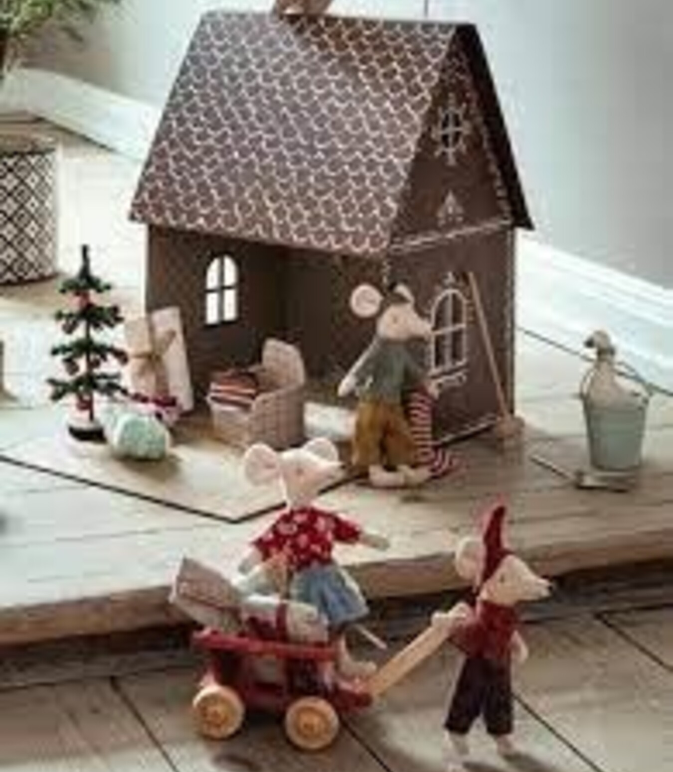 A simply decorated tree that is sized perfectly for mice and rabbits to enjoy the Christmas holidays with a twinkling of silver sparkle.