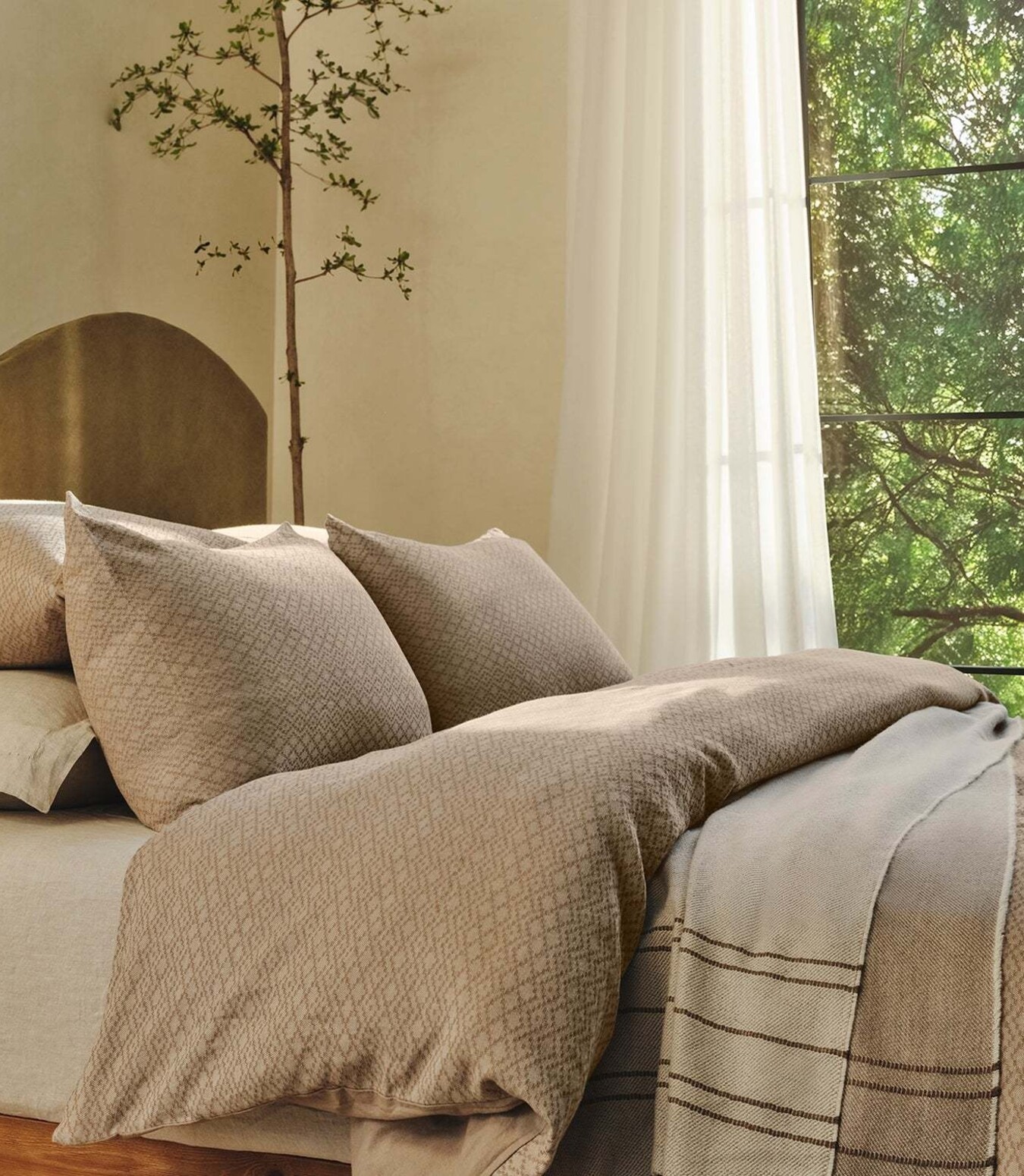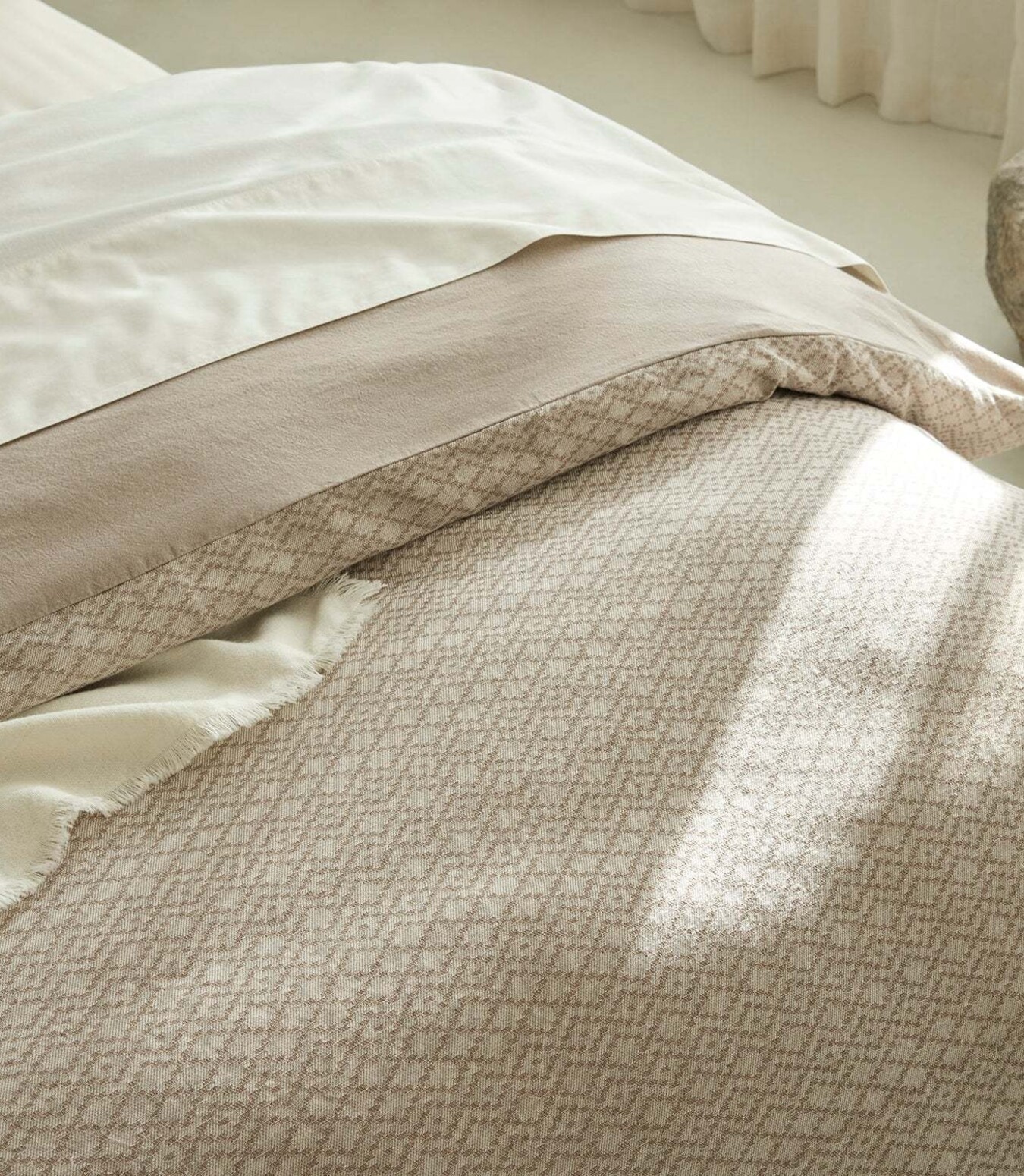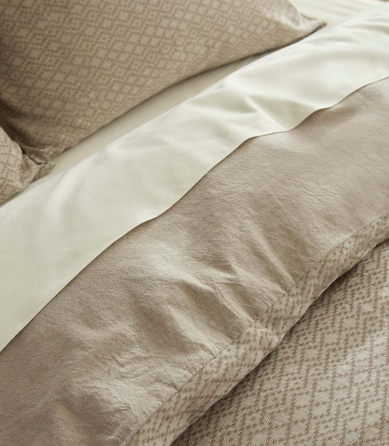 An exquisite diamond pattern brings luxurious texture to our Capitola Organic Duvet Cover. It’s crafted with a tactile, dimensional weave in our new Walnut shade—a neutral that’s subtle yet sophisticated. Its