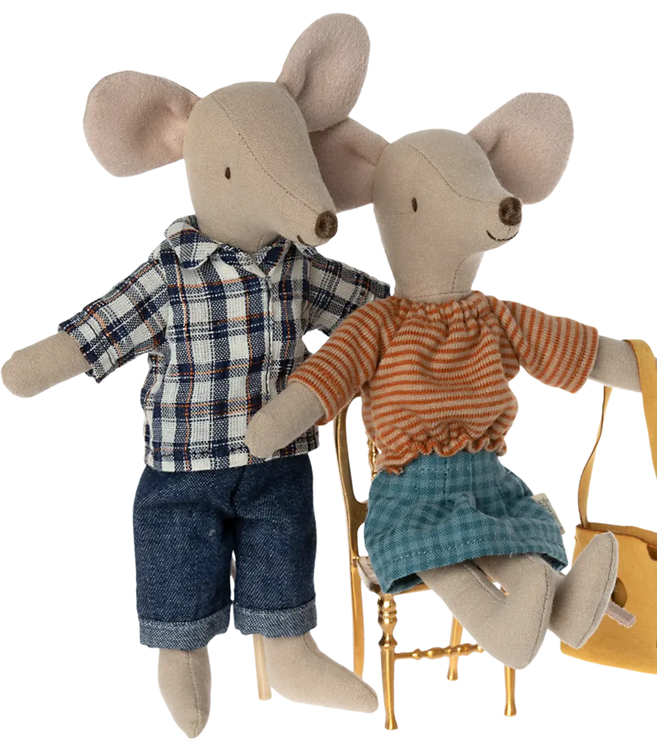 A classic Maileg item; Dad mouse, now in new clothes. This mouse fits furniture and accessories in size mouse.