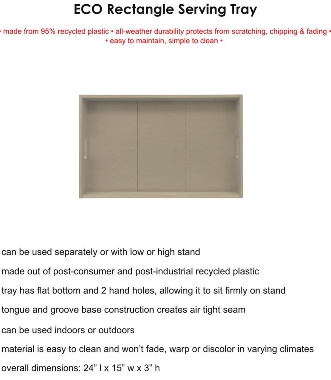 Gate House Furniture’s Rectangle ECO Serving Tray is the perfect accessory for use indoors and outdoors. It can be used alone, or paired with either our low or high folding stand to create a versatile portable table. Our trays are designed to last with stainless steel hardware and 95% recycled plastic that is durable, fade-resistant, and has solid color throughout.