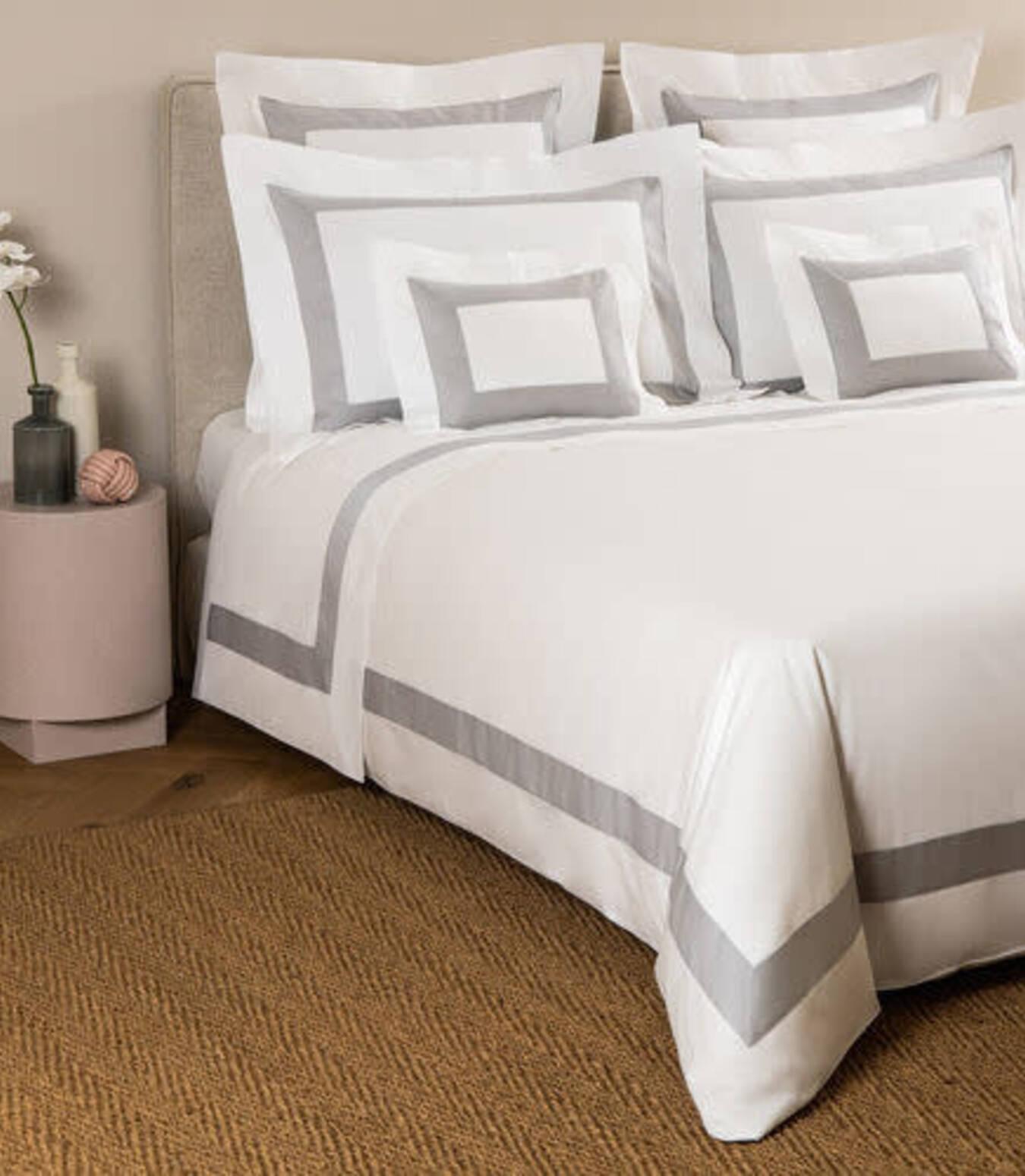 The Bicolore Duvet Cover features an elegant contrasting border finished with Frette's signature open hemstitch on pure long-staple cotton sateen. Ideal for any classic bedroom, this delicate design will provide your space with a luxurious ambience. Try neutral tones for a subtle accent, or bold colours to bring any bedroom to life. 100% cotton. Made in Italy.