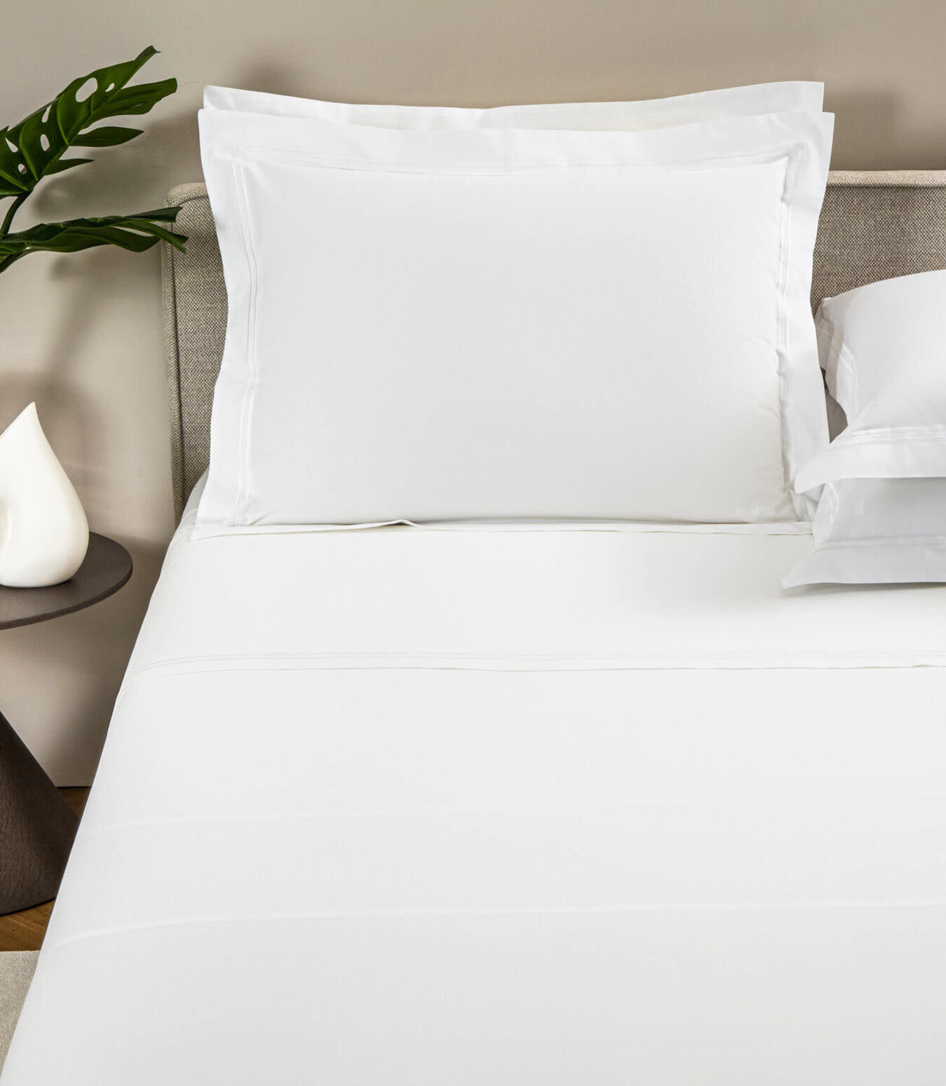 Composed of crisp cotton percale, the set features a top sheet and pillowcases embroidered with two distinctive borders. This simple and timeless set is part of our Hotel Collection - the style choice for many of the world's finest hotels. Soft as a cloud, the Hotel Classic Sheet Set transforms daily routines into a luxurious affair. The sheet set includes a top sheet, two pillowcases, and a fitted sheet. Twin size includes one pillowcase. 100% cotton. Made in Italy.