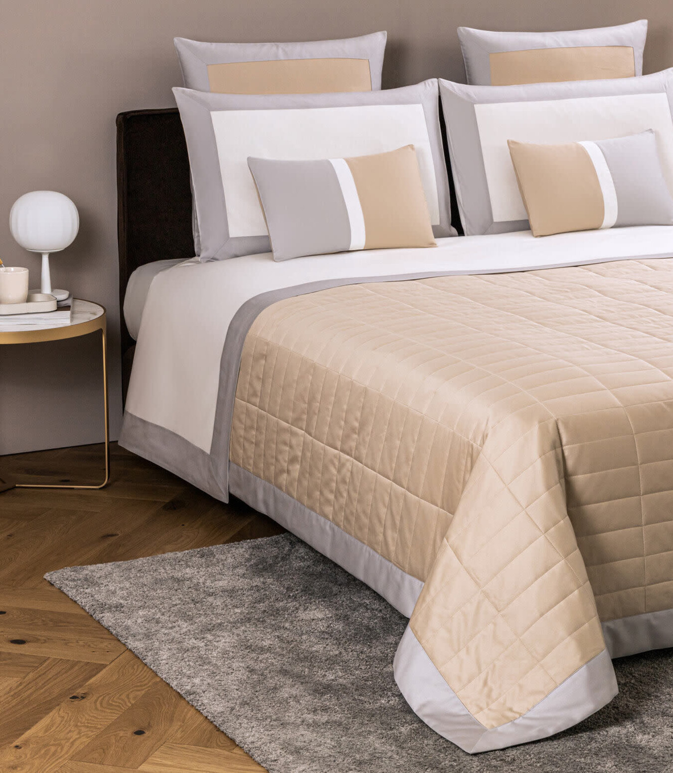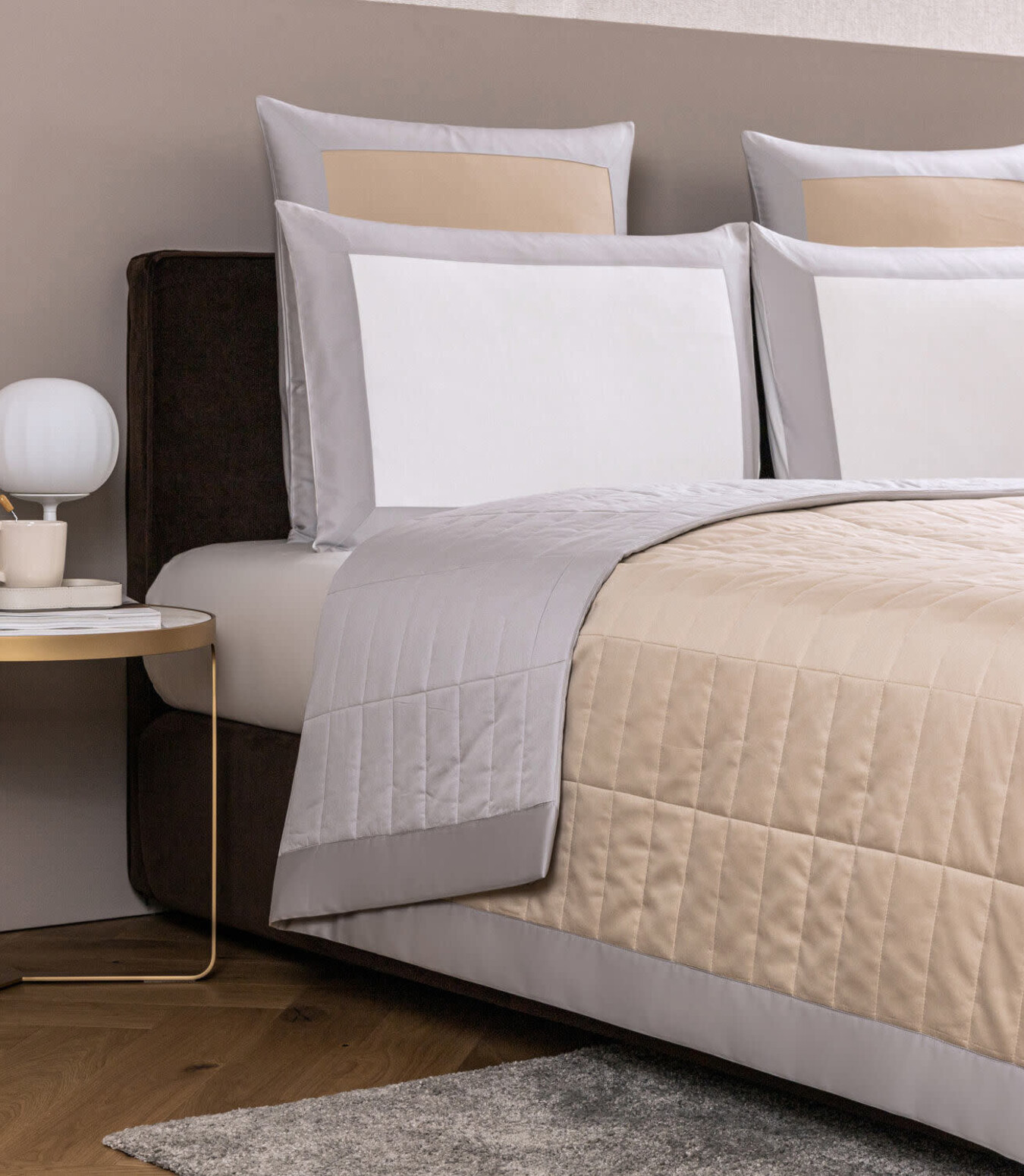 The Rectangular Light Quilt is a stunning accent piece for every bedroom space. Available in bold contrasting colours that create a symmetrical focal point in any room, the light quilt in soft and silky long-staple cotton sateen is perfect for a cosy night in bed - the crowning glory for any modern bed. 100% cotton. Made in Italy.