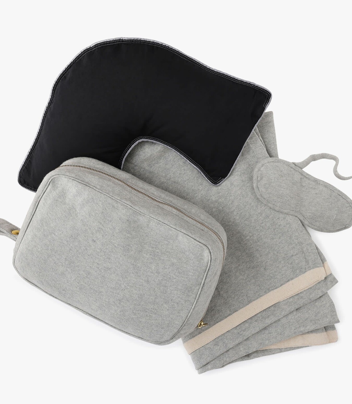 Treat your favorite globetrotter to the ultimate gift for their on-the-go lifestyle. The stylish and functional heather grey cashmere-like cotton Globetrotter Travel bag contains all the essentials for a restful sleep during their journeys.