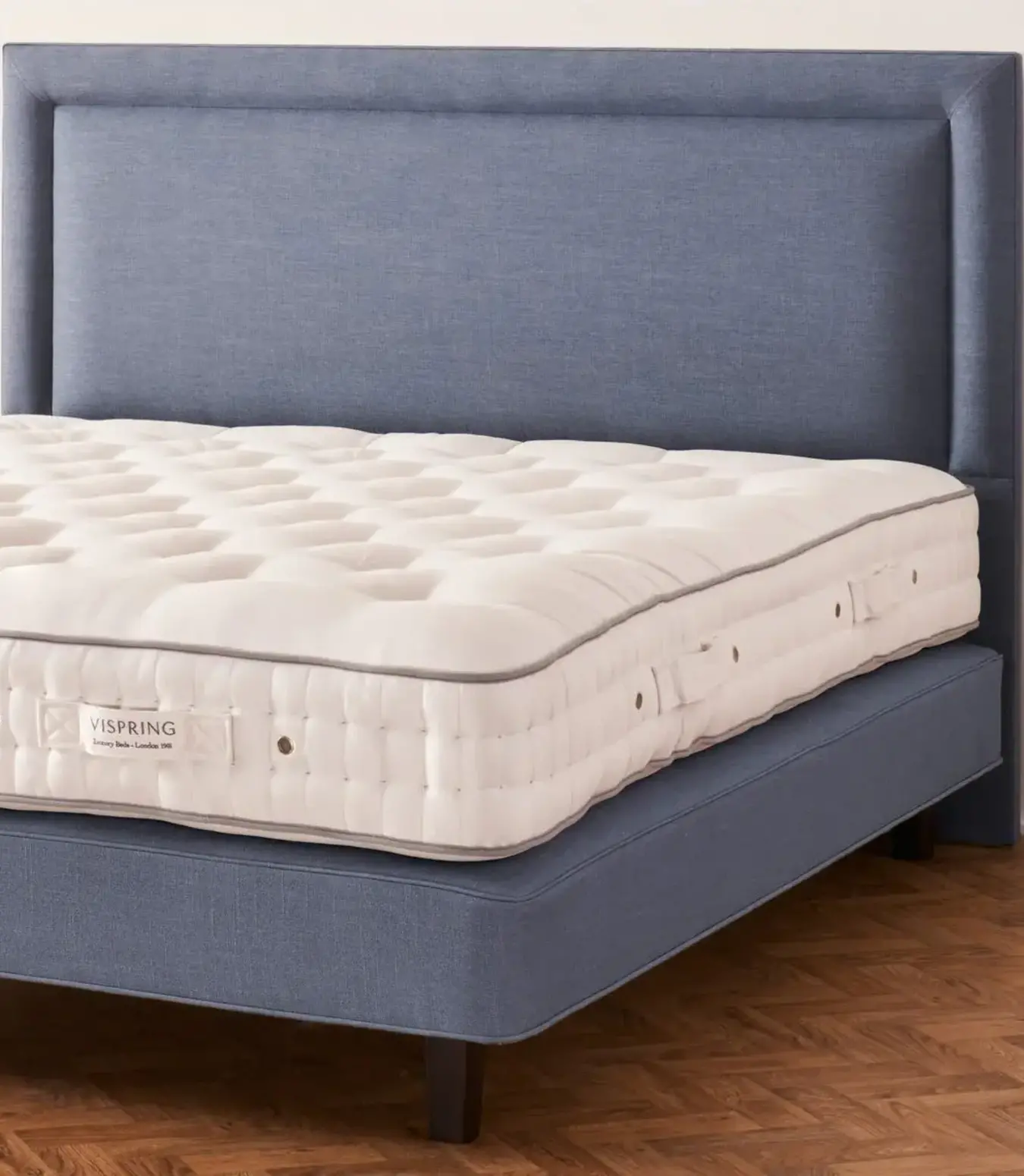 The Vispring Helios Headboard is a classic design. Deeply upholstered with a plain padded border and mitered corners. Height 26 inches (66 cm).