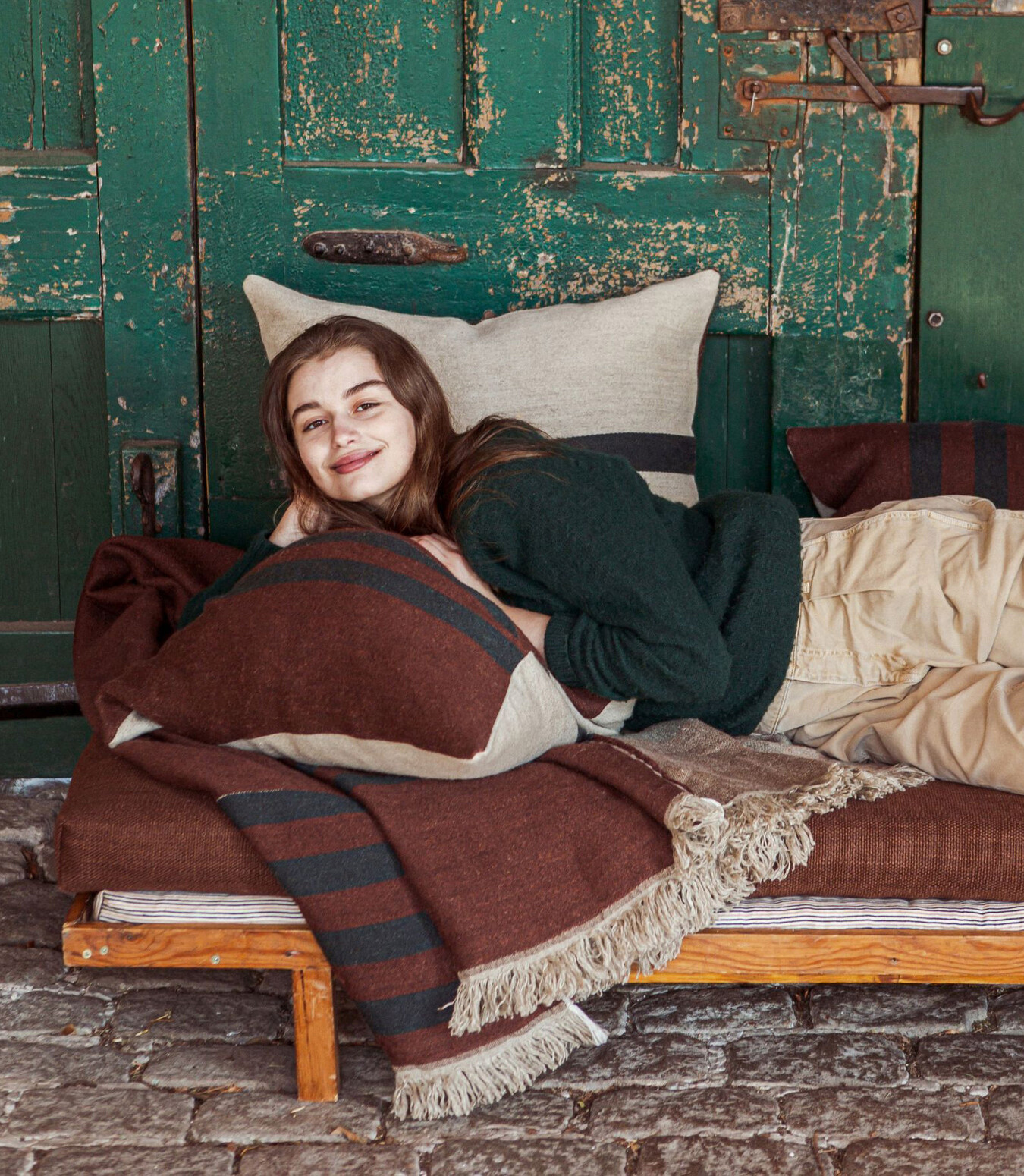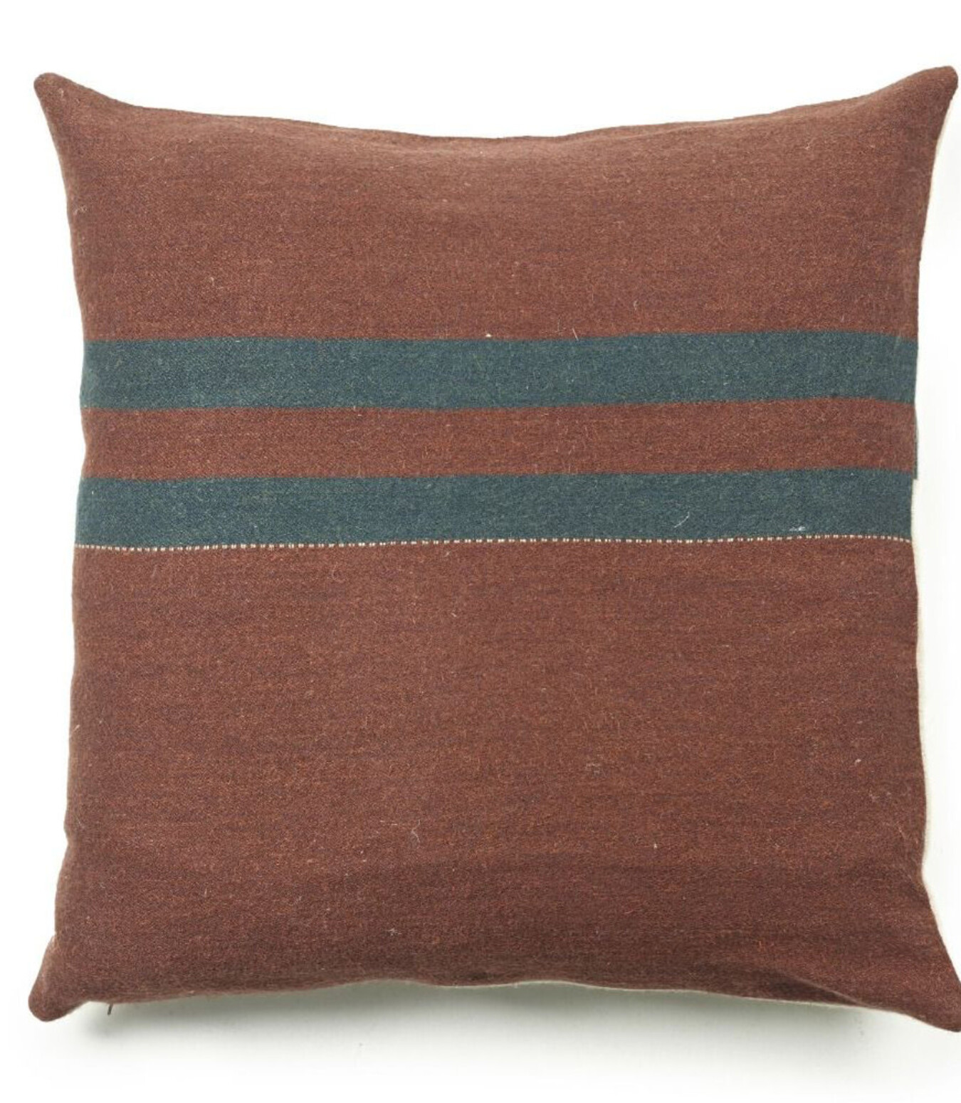 Our new Juniper pillow covers have a mysterious merlot-brown ground, and a contrasting back with spruce green stripes. Two looks in one!70% LI - 30% WO.Washed Finish.18 oz/yd² - 610 g/m².
