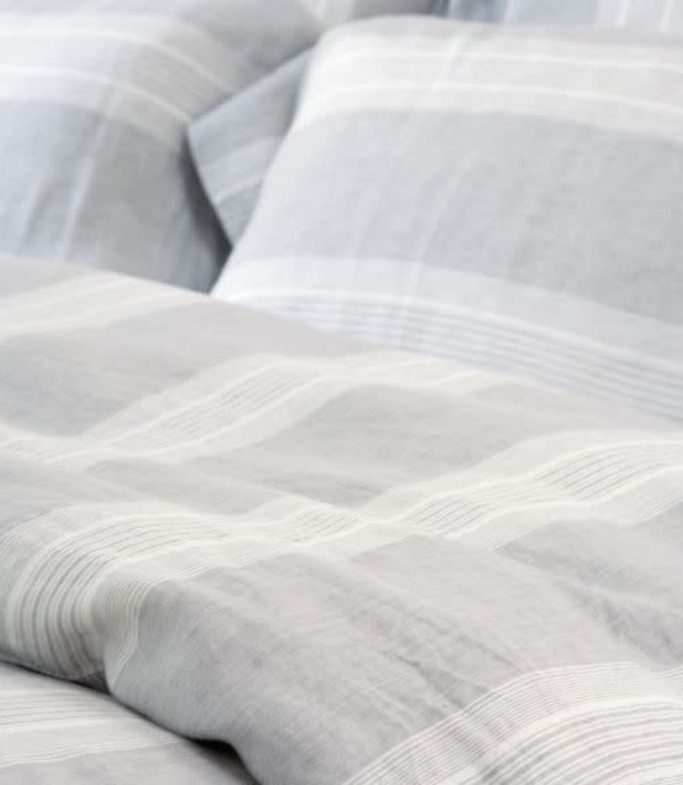 The Sisco bedding collection by Libeco features oyster stripes sitting on a subtle gray herringbone ground, which has a slightly water colored look. It’s become a Libeco classic.