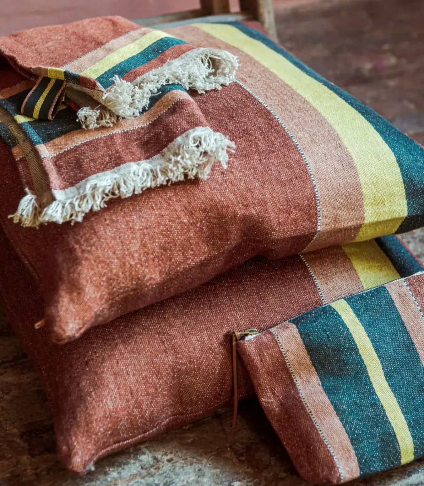 This is an artisanal product, made of unique linen yarns. Variations in the fabric and fringe are normal and to be expected. Please wash at no more than 30°C/86°F on delicate, hand wash or wool wash. Line dry only. If you choose to iron, do so with steam on slightly damp linen.