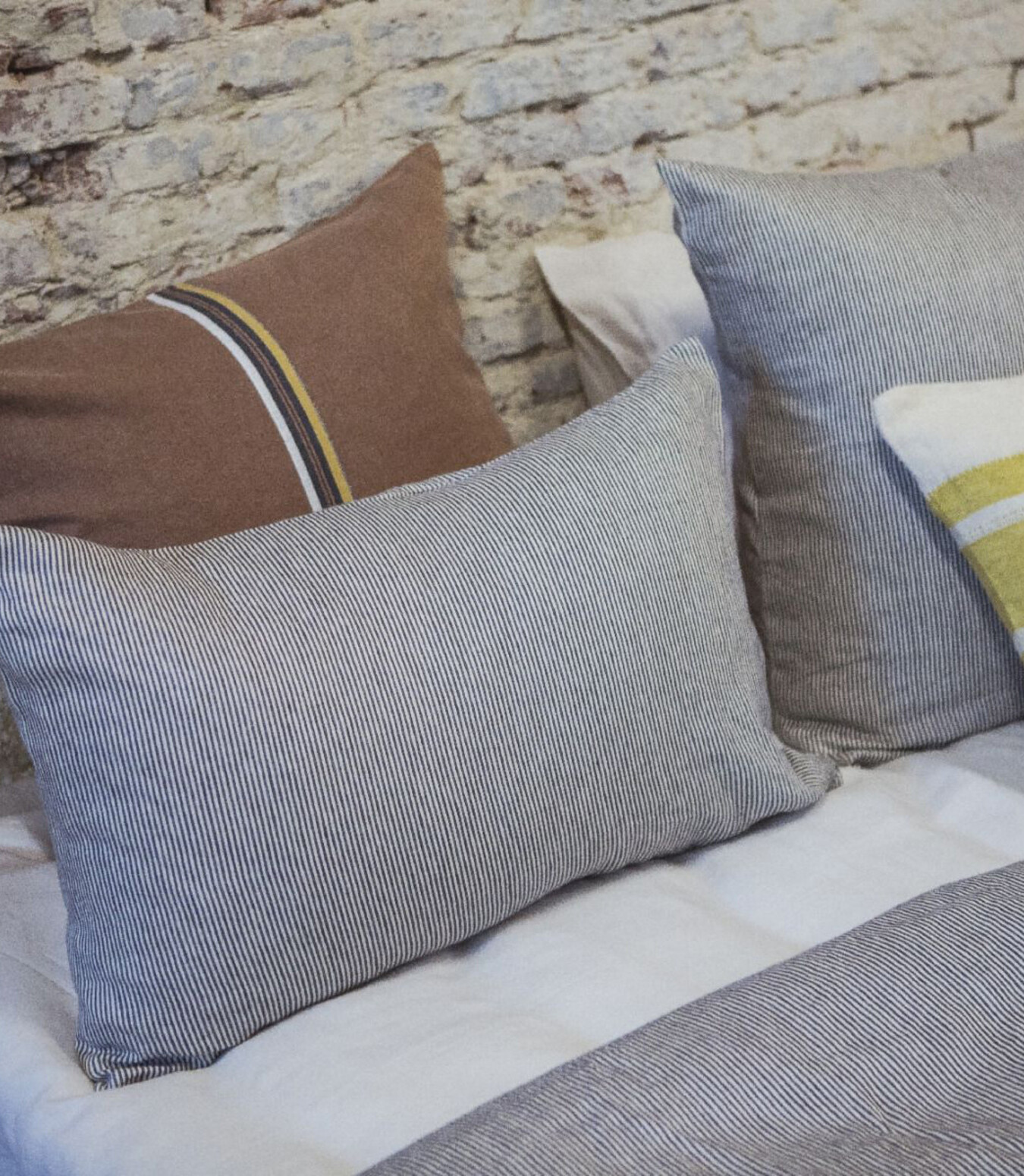 The Sisco bedding collection by Libeco features oyster stripes sitting on a subtle gray herringbone ground, which has a slightly water colored look. It’s become a Libeco classic.