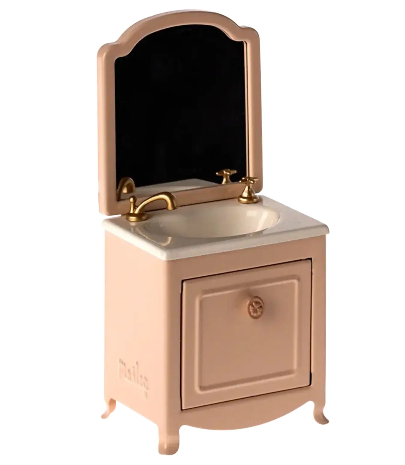A very essential item for the the bathroom in any mouse house. It has a small closet under the sink and of course a mirror as well. Add the Maileg toilet and bathtub to extent the play.