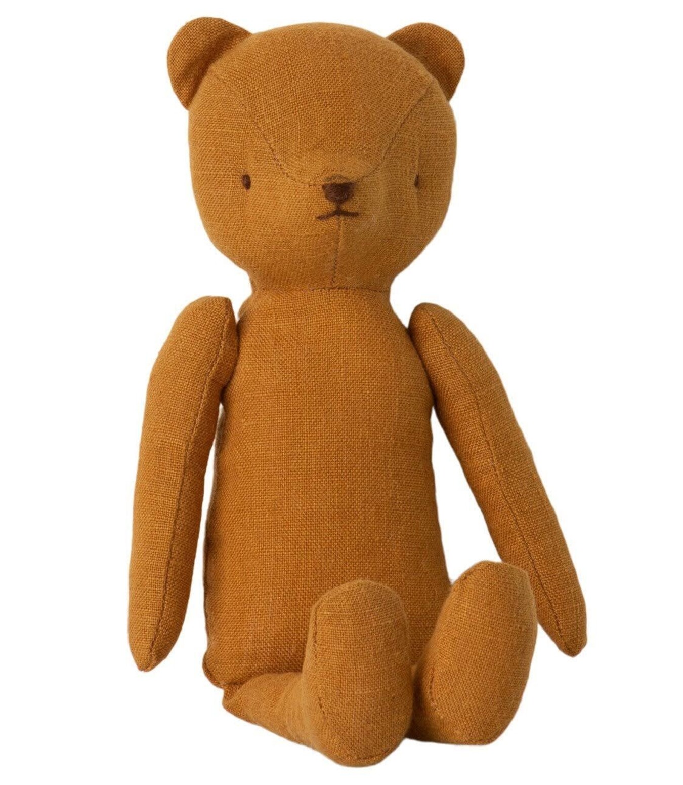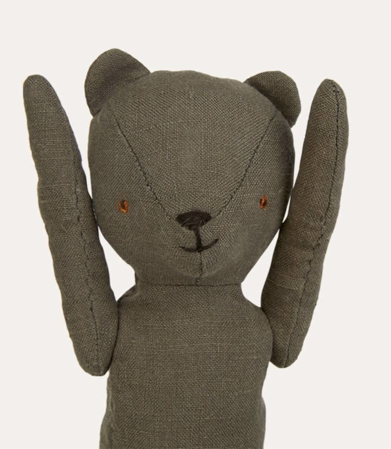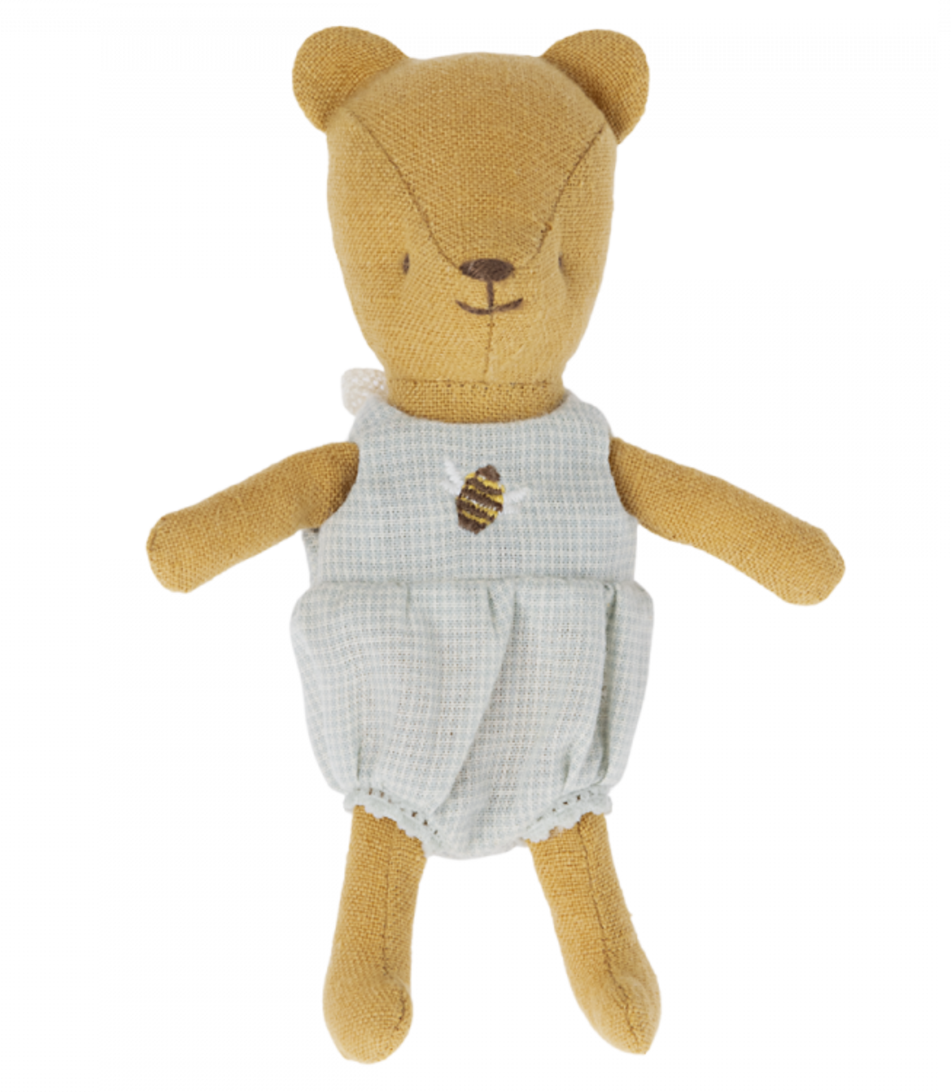 *A baby has arrived to the teddy family. Made in same soft linen fabric as the rest of the teddies, Baby comes dressed in a small suit with embroidery. Height: 4.92 in.