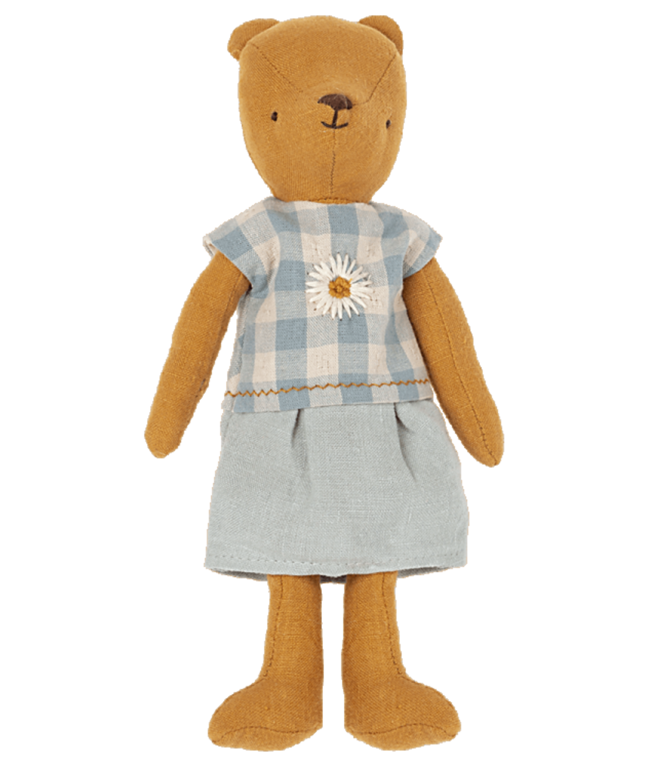 The Teddy bear family is a sweet collection of 3 different sizes of Teddy bears. They are made of soft linen and their shoulders are articulated so they can rotate and stay in place. The Teddy Family has a vintage look that will bring back dozens the memories.