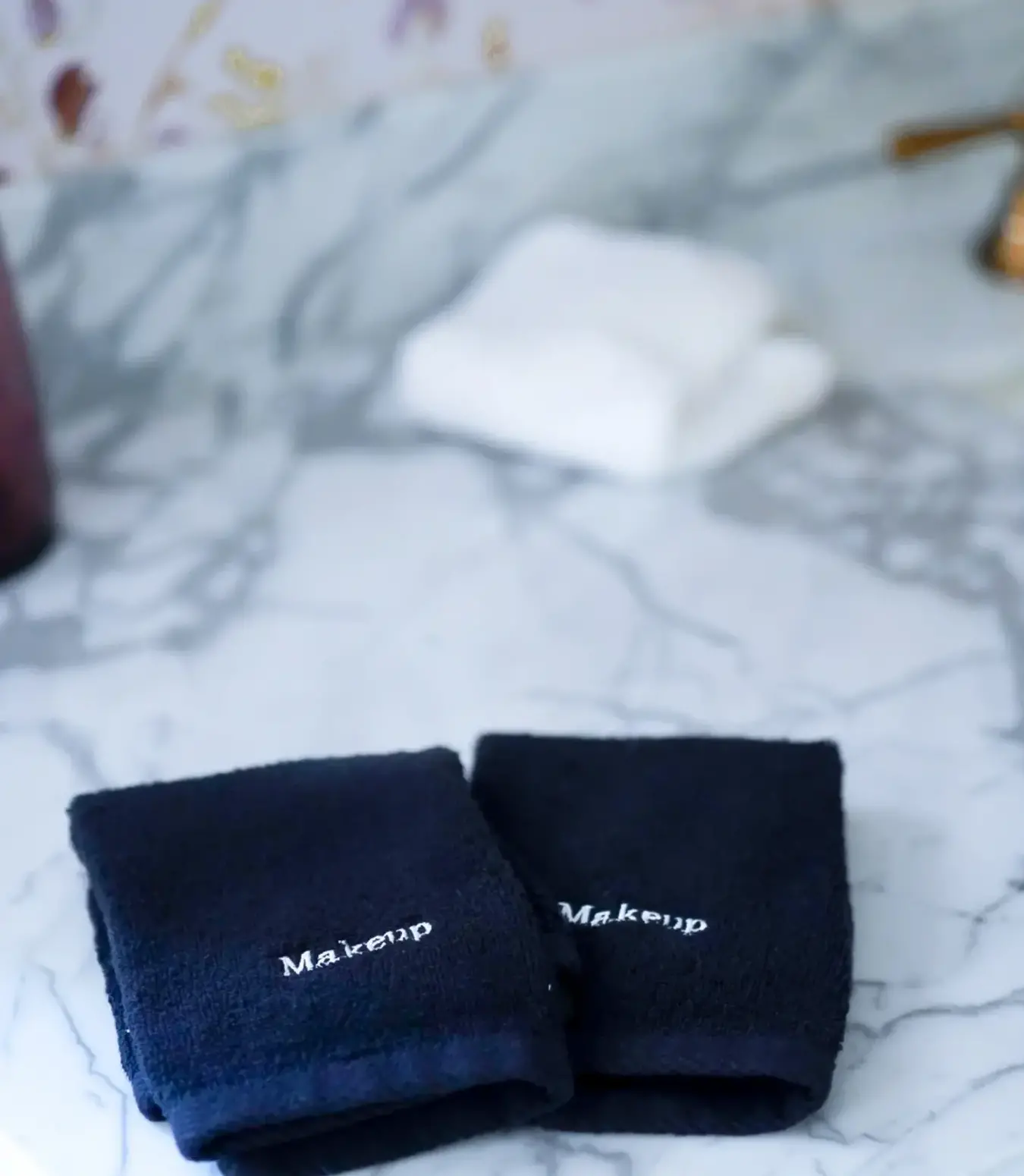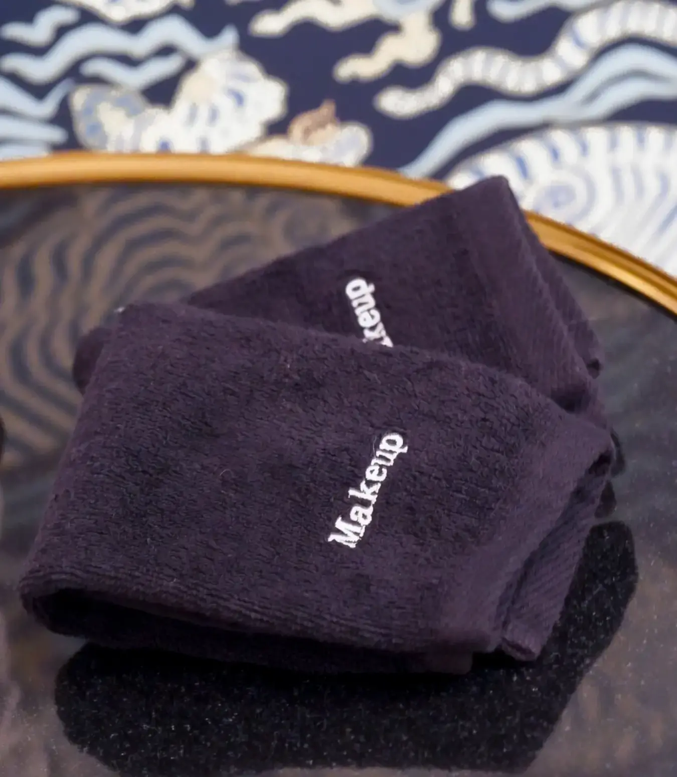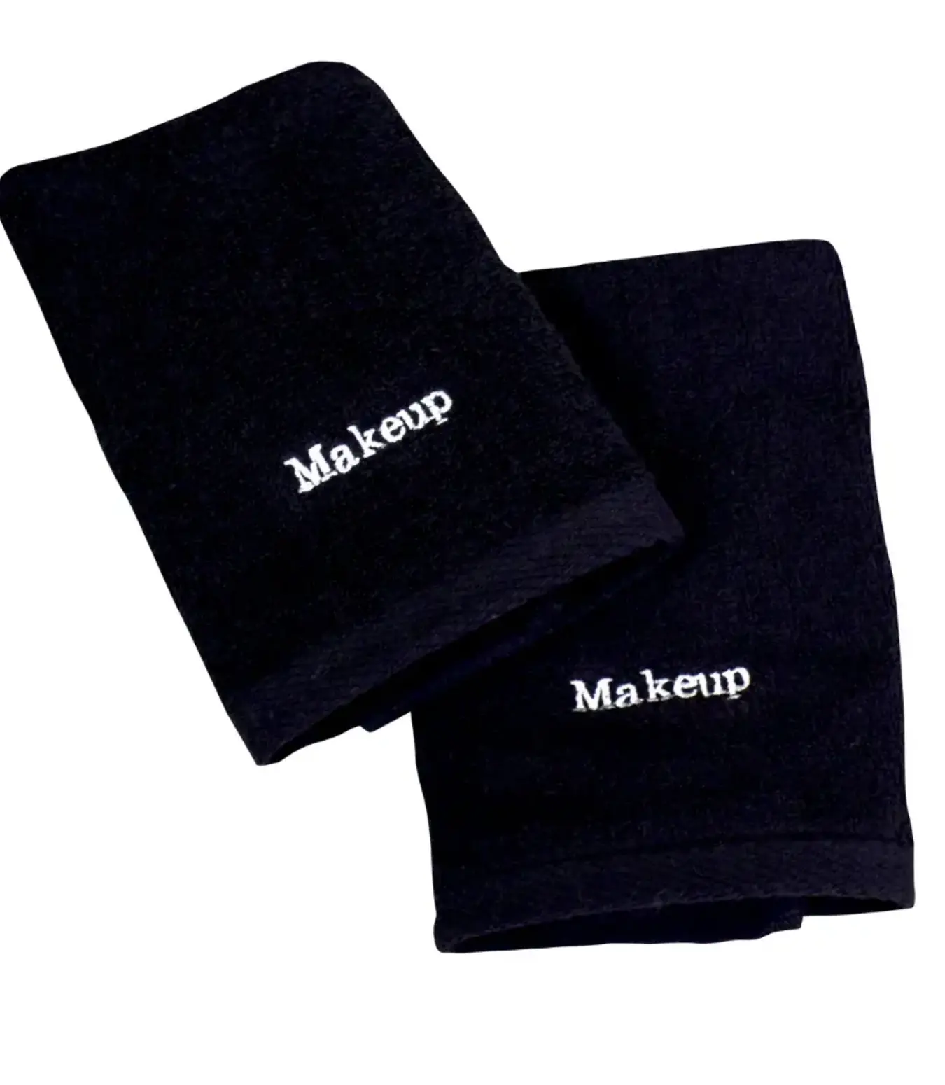 Say goodbye to makeup stains on your precious white towels! Introducing our solution: a set of 100% ring spun cotton black makeup towels. Each towel is embroidered with the word "makeup," ensuring their designated purpose is unmistakable.
