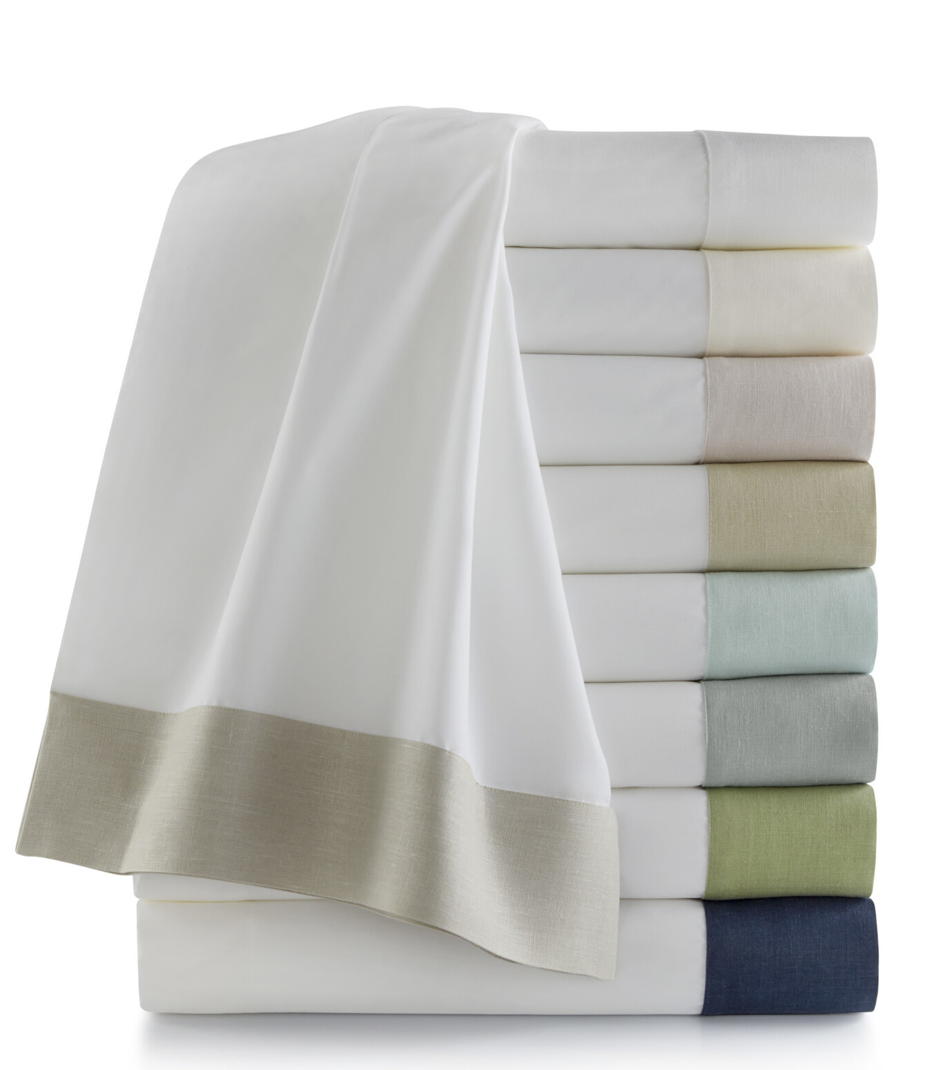 - Flat sheets feature a 4" linen cuff detail