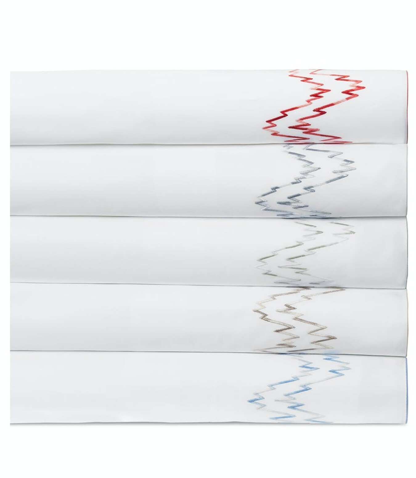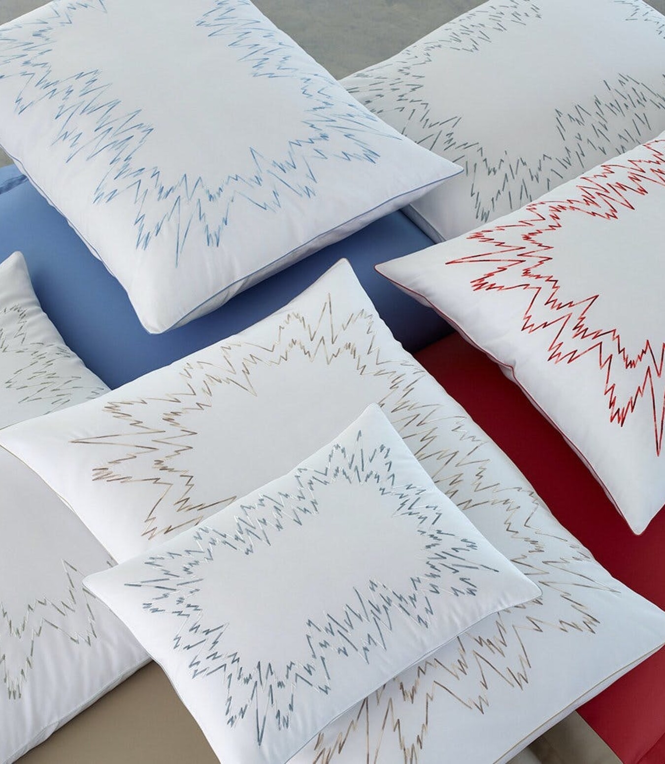 Aries features an exciting embroidery pattern inspired by our bespoke Flamestitch design. Ombré threads create a sense of pulsating color on our Milano percale, for bedding with a cool, modern energy and a classically luxurious feel.