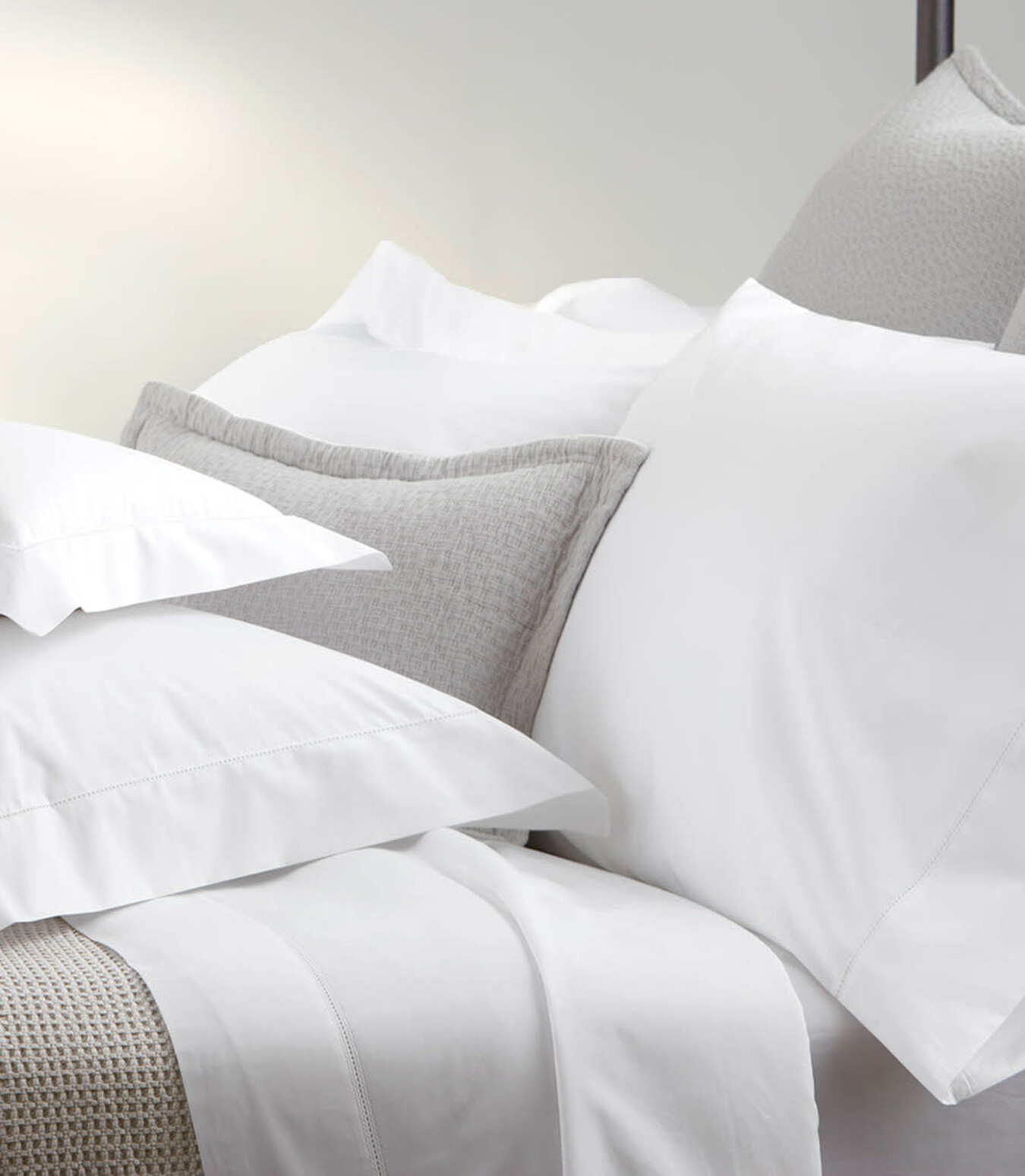 Matouk’s iconic, best selling style is an elegantly modern bedroom staple—white or ivory percale sheeting lavishly woven in Italy from the finest Egyptian cotton, finished with a distinctive 1-inch trim in a variety of colors. Please call the store 3070734-7424 for a complete list of colors and Bedskirt sizes.