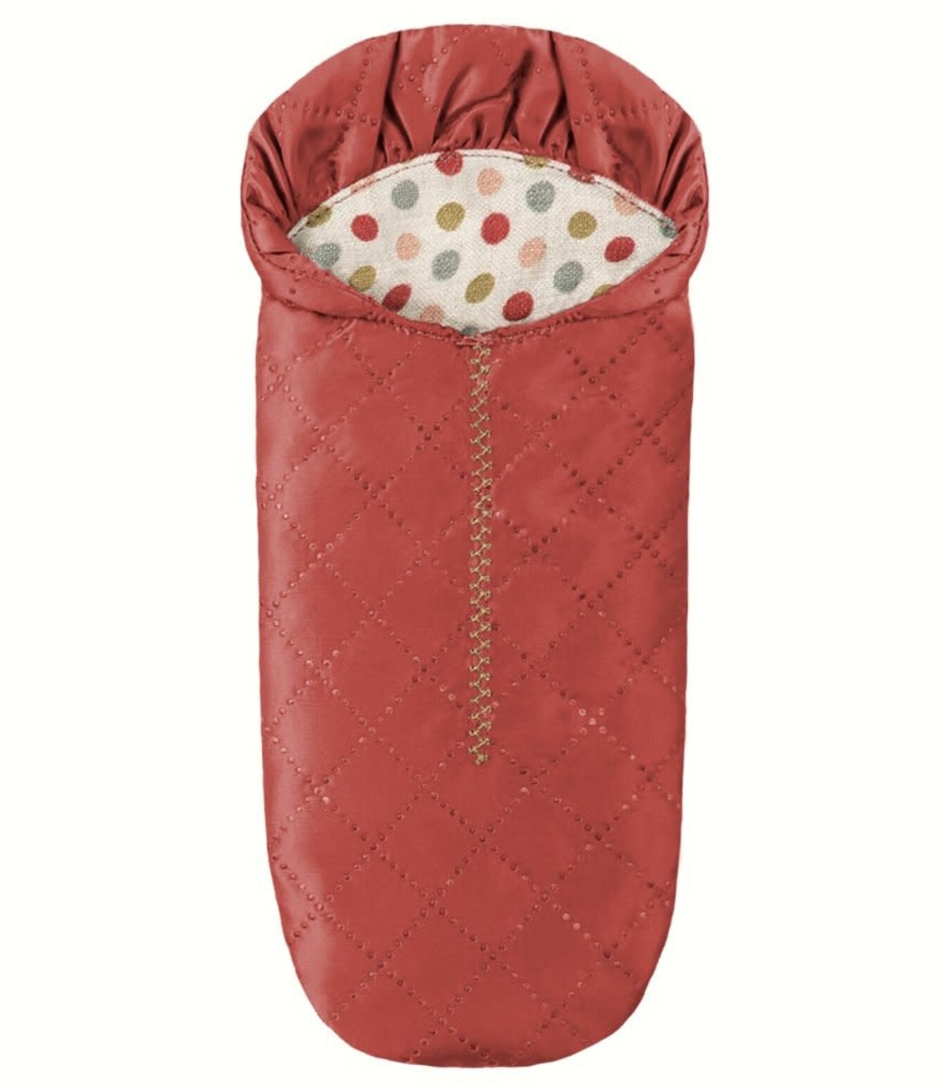 Snuggle with your Maileg ‚ mice and tuck them into bed in our adorable sleeping bag! Sleeping bag ‚ comes in either red or blue and is lined in a cute pattern! The material has a crisscross pattern stitched into it.