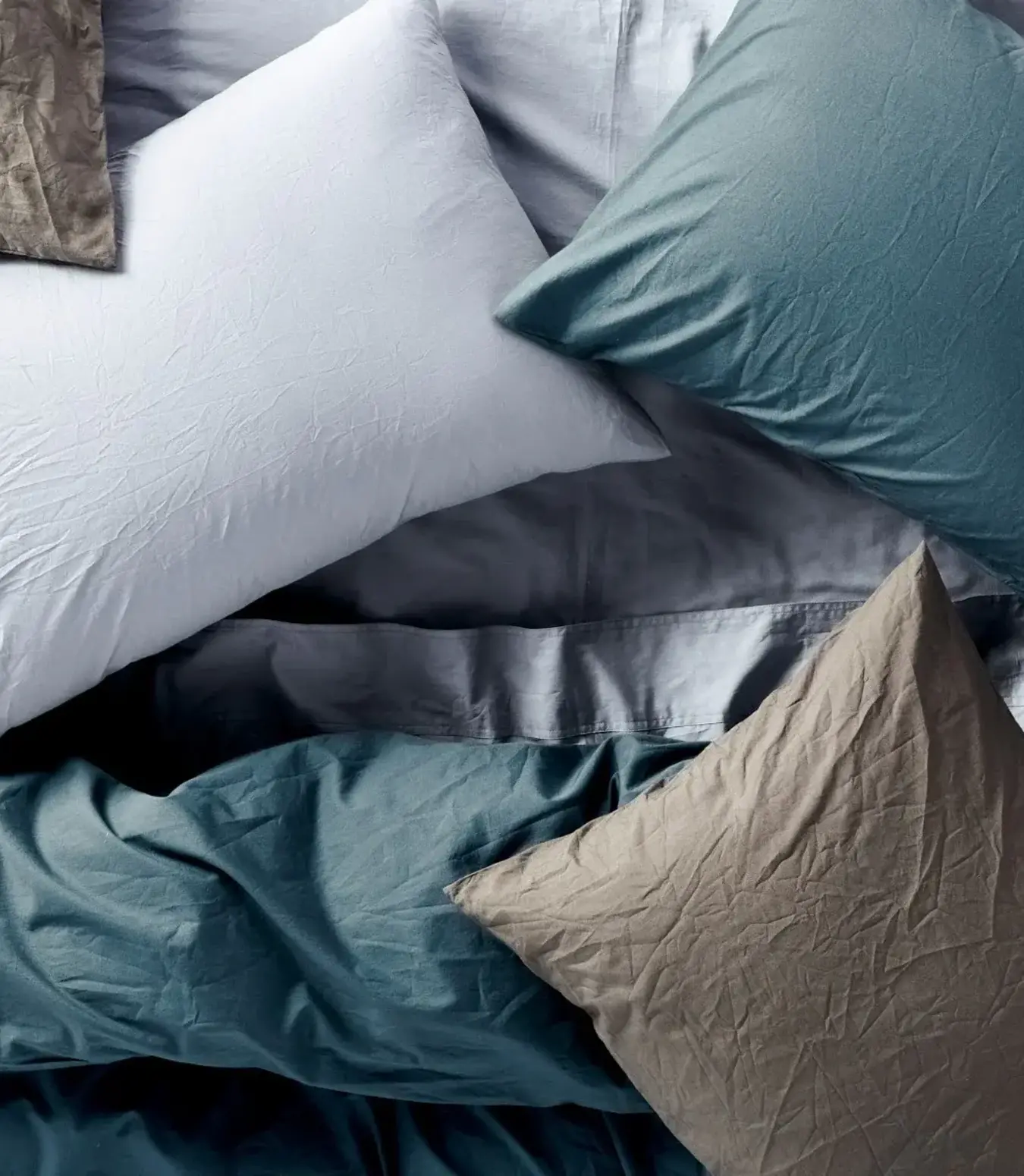 Let the stress of the day melt away as every crinkle envelops you in dreamy, carefree comfort. The softness of organic cotton percale meets the unpretentious embrace of unwrinkled sheets. Beautifully relaxed, naturally breathable, and endlessly soft sheets for every season.