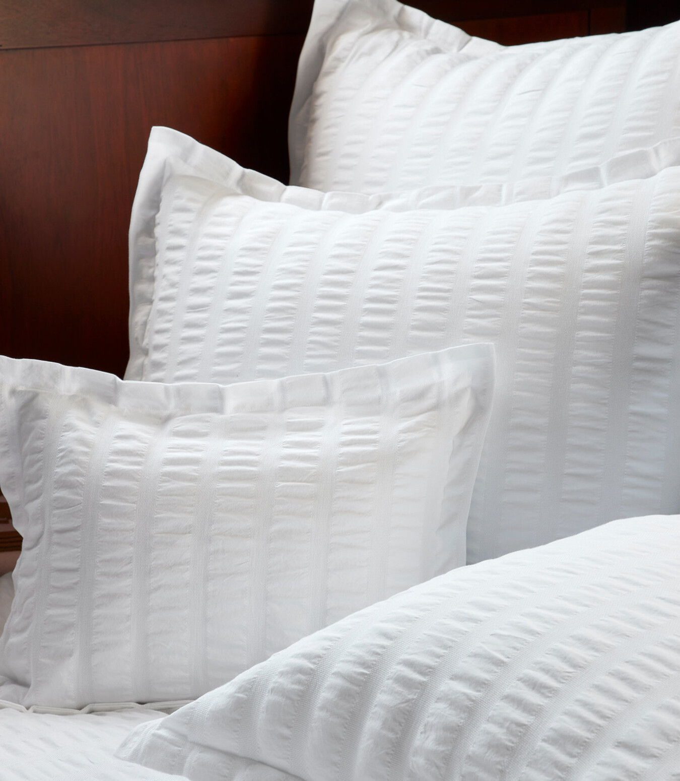 Rows of oversize cotton seersucker and basketweave woven in Portugal give this duvet and shams a modern update on a classic look. Pair it with a colorful pattern or layer it on an all-white bed for added texture and subtle pattern.