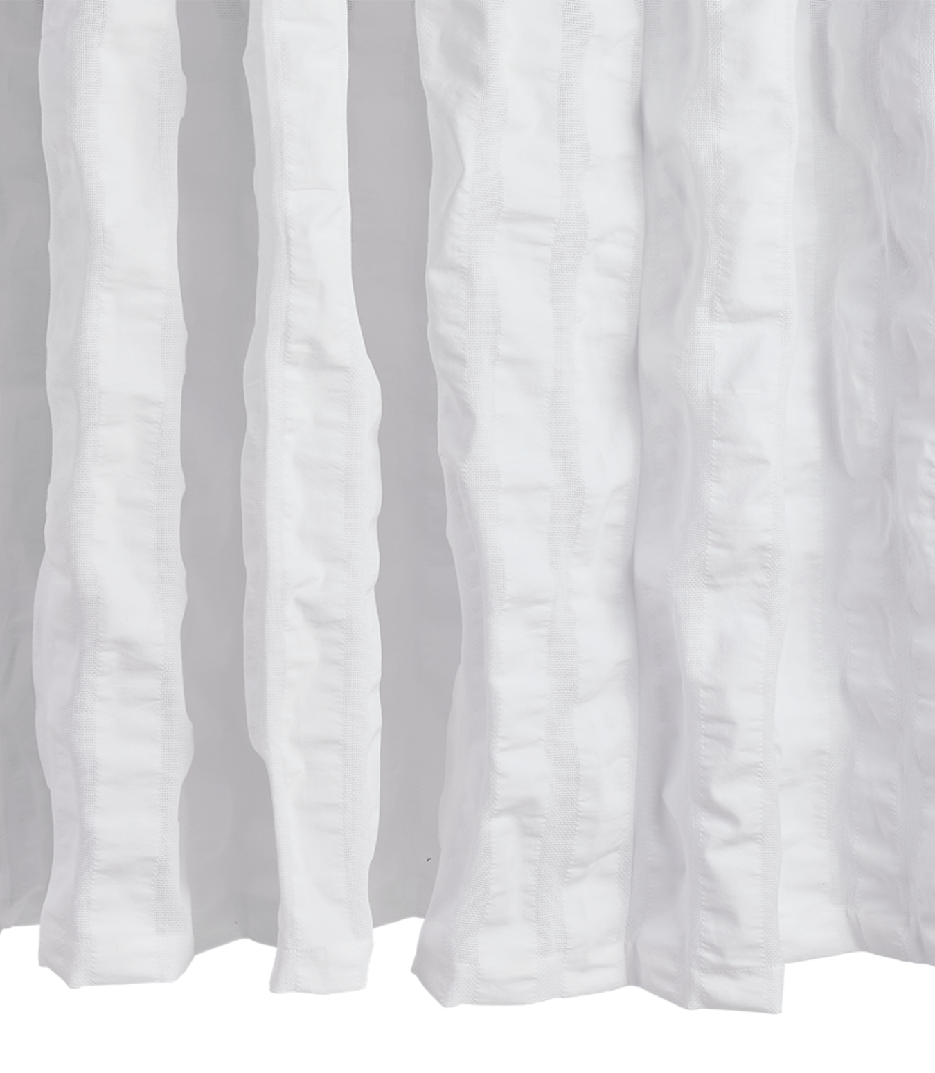 For the Panama shower curtain, summer seersucker is taken to a grand scale amid rows of basketweave, giving it a bold update.