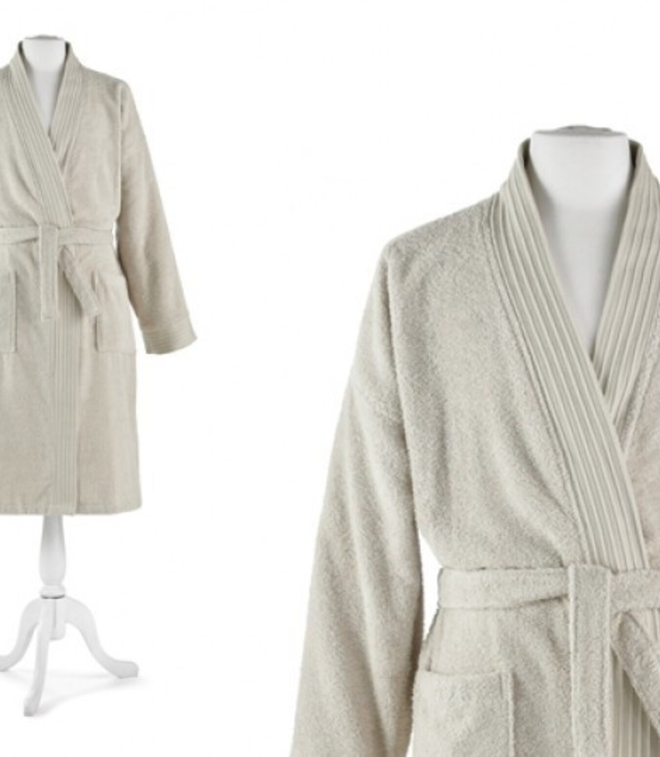 Our Bamboo Robe is made from 60% rayon from bamboo and 40% cotton. Available in Linen and White. Machine Washable