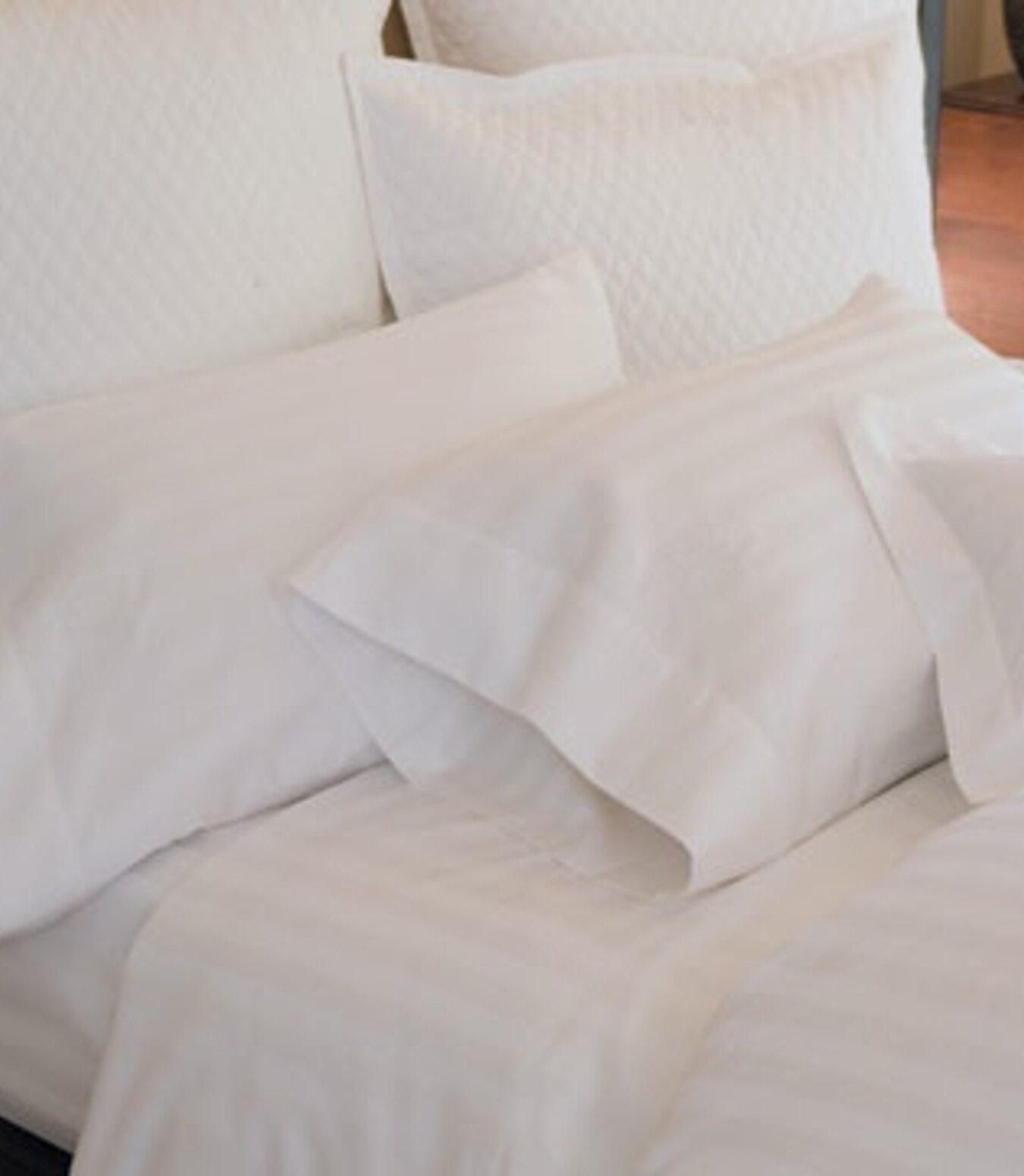 Duet by Peacock Alley, 400-thread-count sateen sheeting and duvet collection enhanced with a handsome damask stripe design. Made of 100% Egyptian cotton. The Finest in luxury linen sheeting.