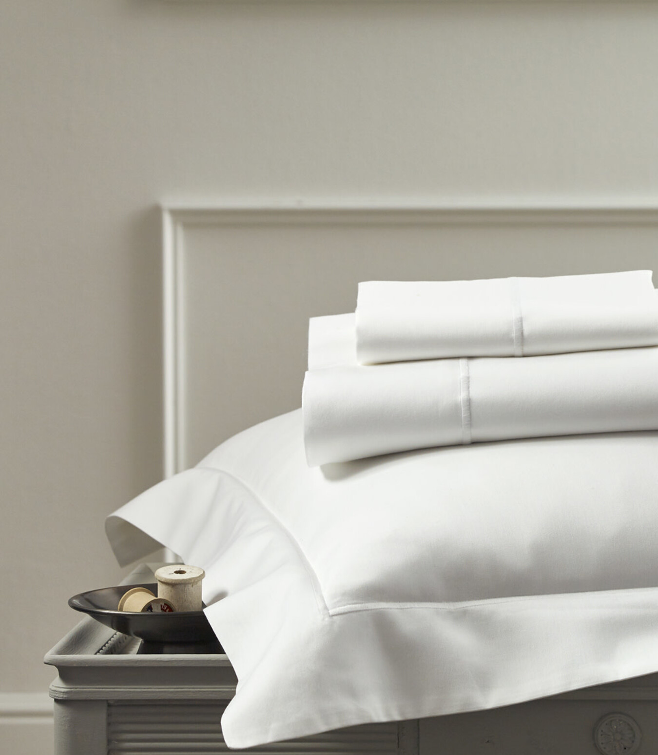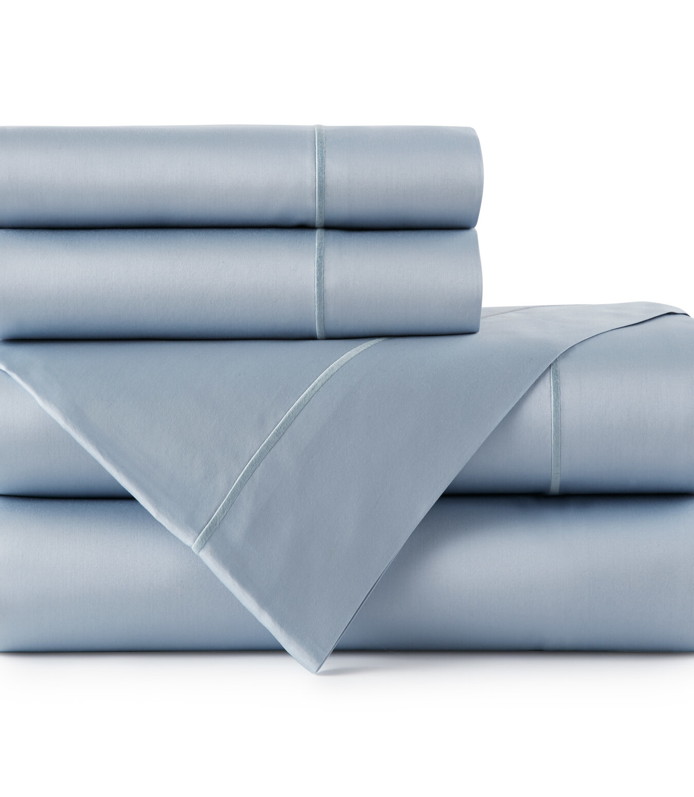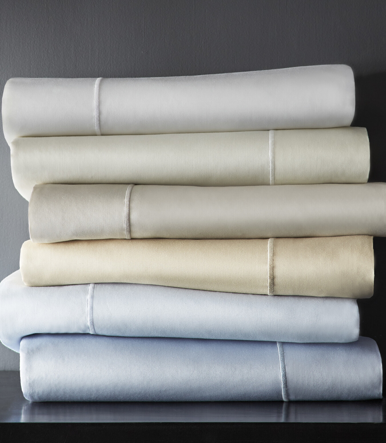Soprano BY PEACOCK ALLEY, the most popular sateen sheet is finished with a classic blanket stitch hem and is made of 420-thread-count, Egyptian cotton.