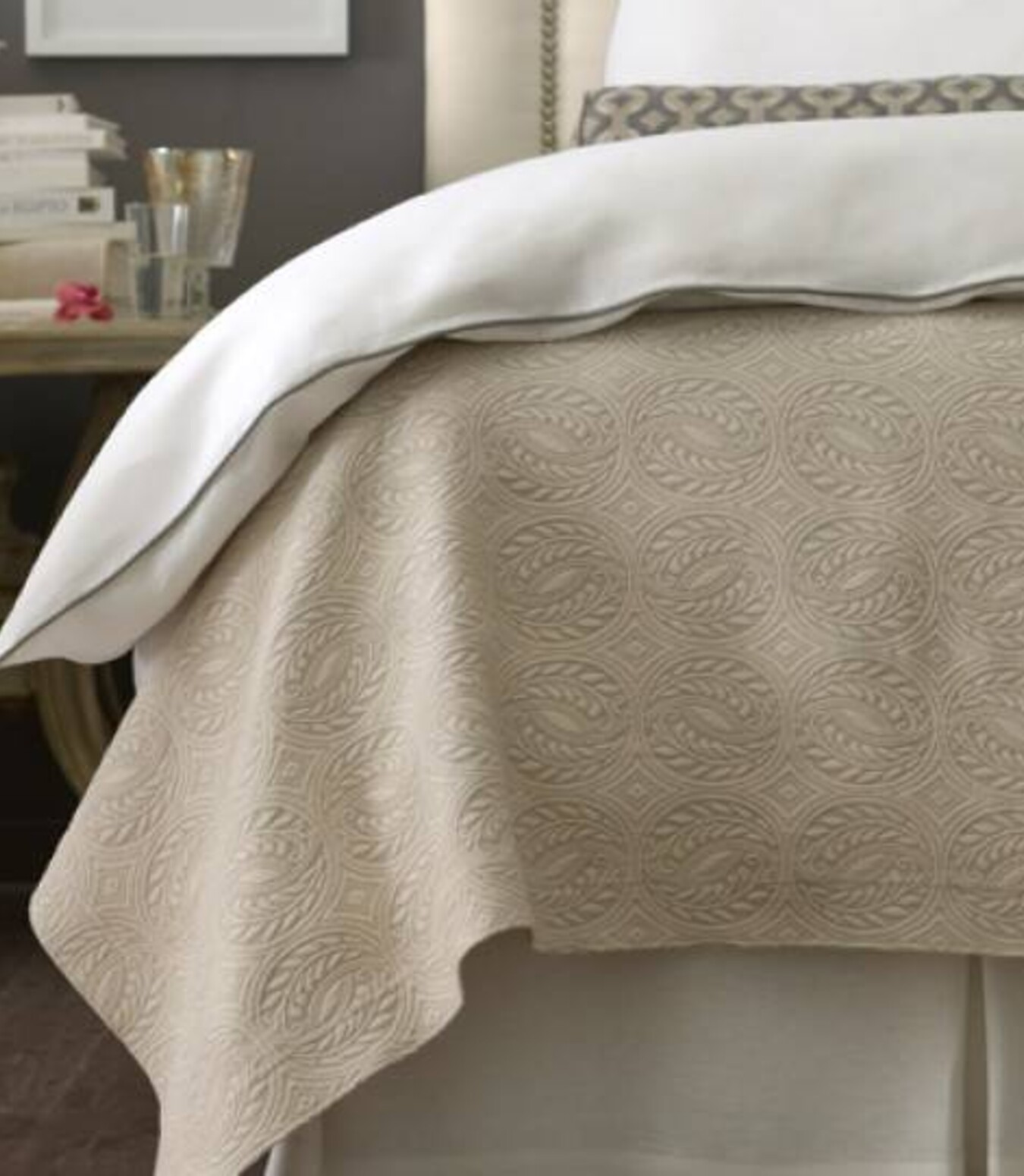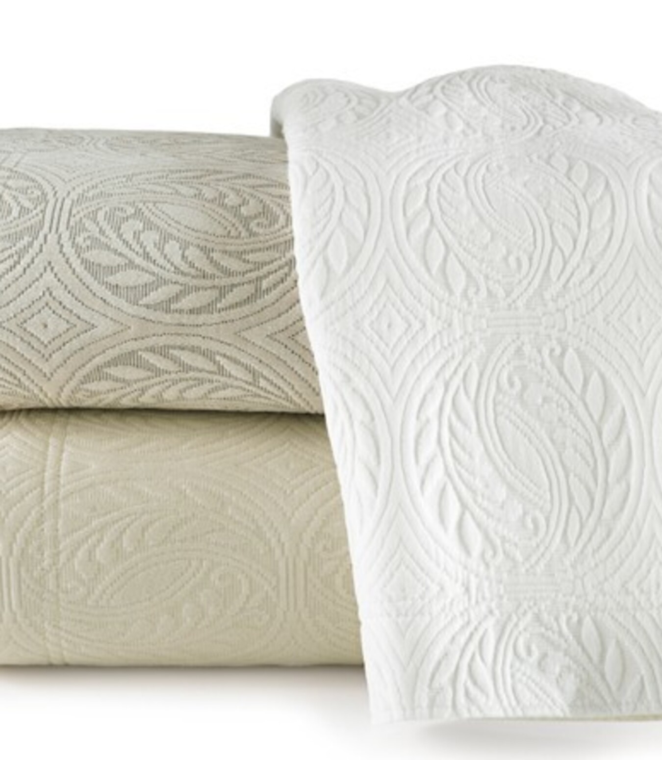Vienna has been Peacock Alley's signature matelassé for over 30 years. The design of this classic, understated coverlet was fashioned after an 18th-century French button. Our clients continue to purchase this pattern year over year. 100% Egyptian cotton. Portugal.
