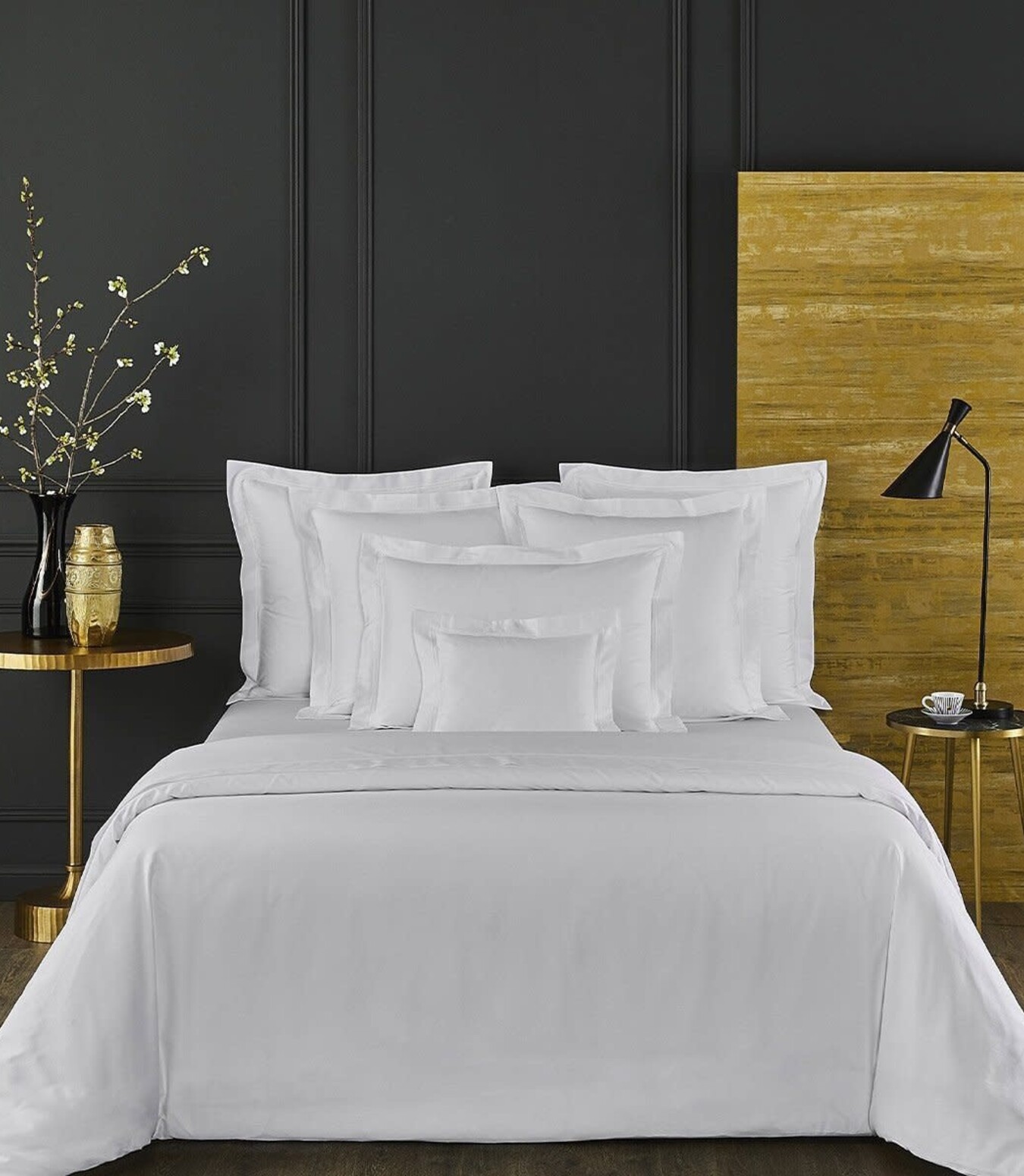 Triomphe, a subtle and autonomous collection available is eight colors. A classic that stands alone or plays well with others. Egyptian-combed cotton with a sateen finish. 310 thread count is as soft as silk, with a simple but decorative raised double, saddle stitched border.