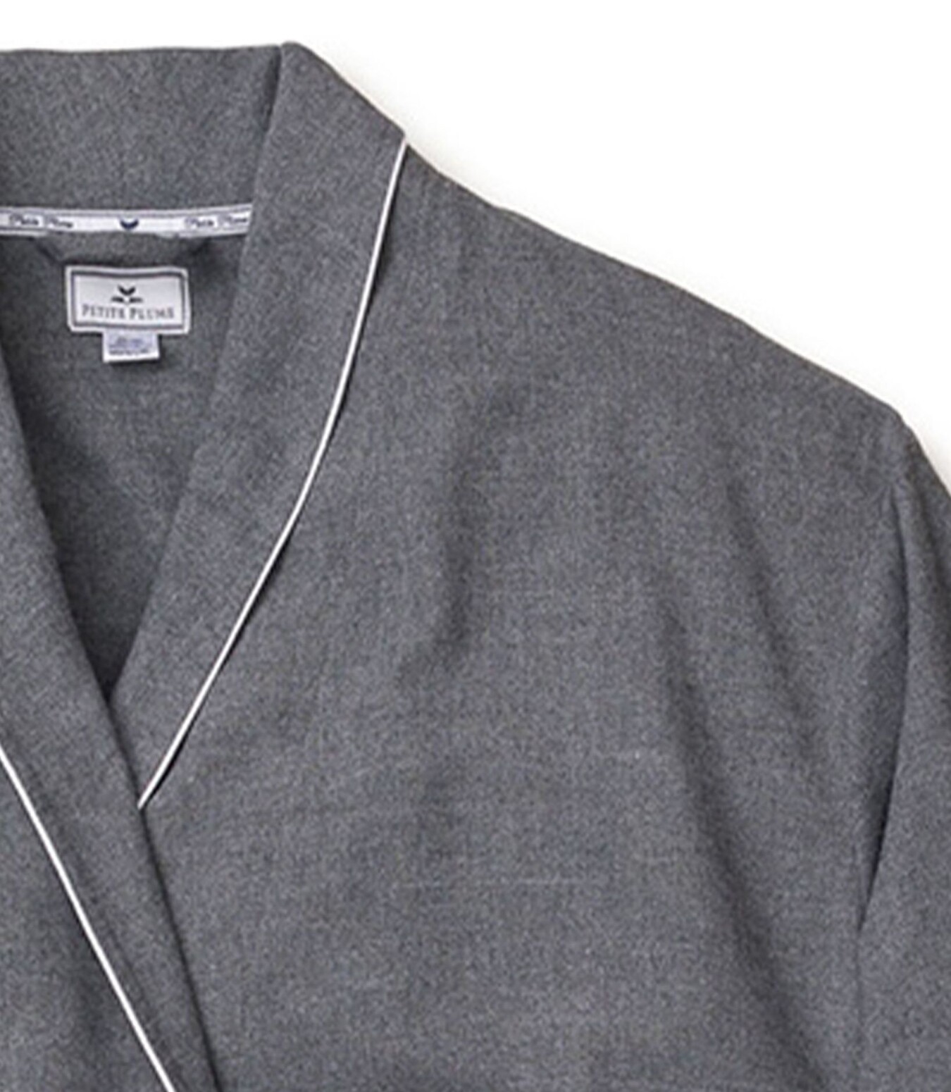This sophisticated grey is inherently versatile and always stylish. This fabric has unmatched softness and is lightweight, perfect for year-round comfort. This classic pajama set is accented with white piping and finished with pearl buttons.