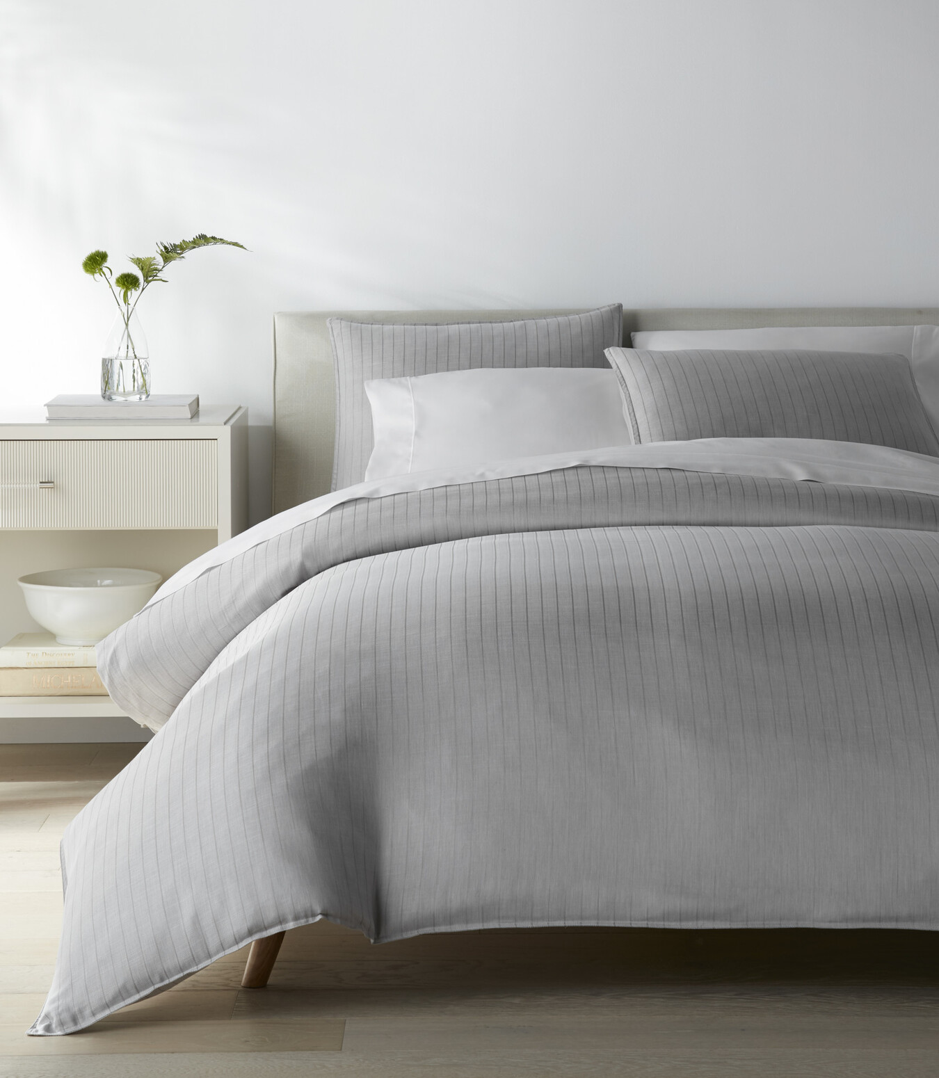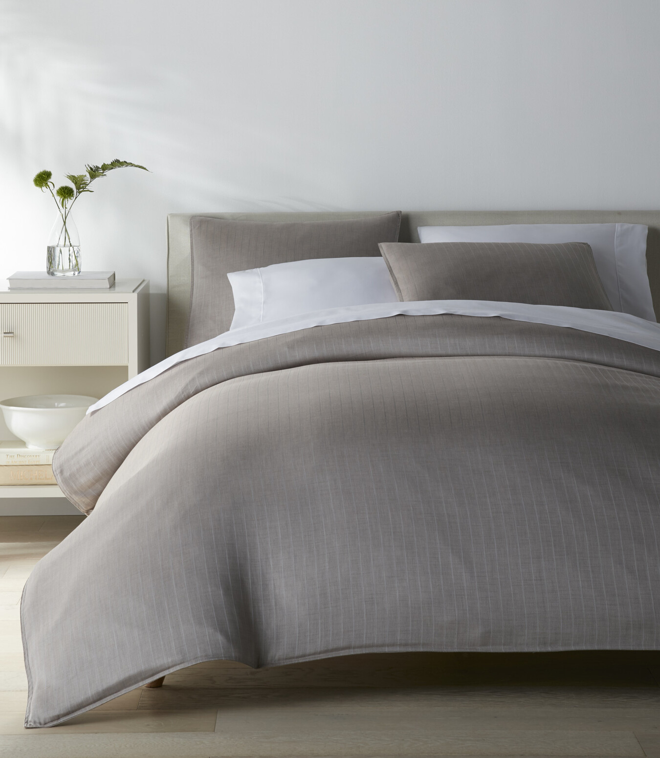 Elevate your bedding with the refined details of Riga. Subtle tone on tone stripes create a modern, yet classic design. With an intricate herringbone pattern that pairs effortlessly and is silky-smooth to the touch.