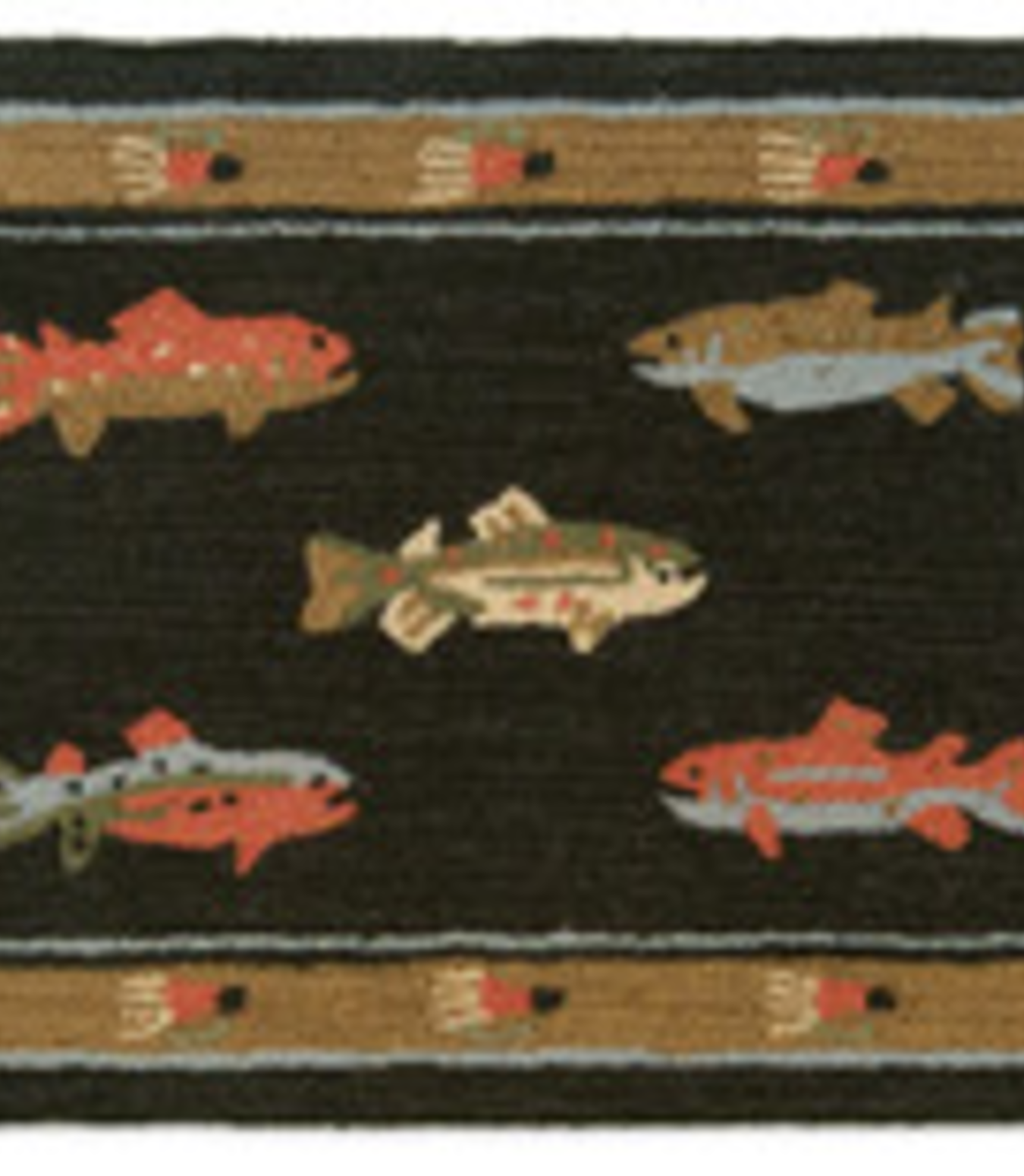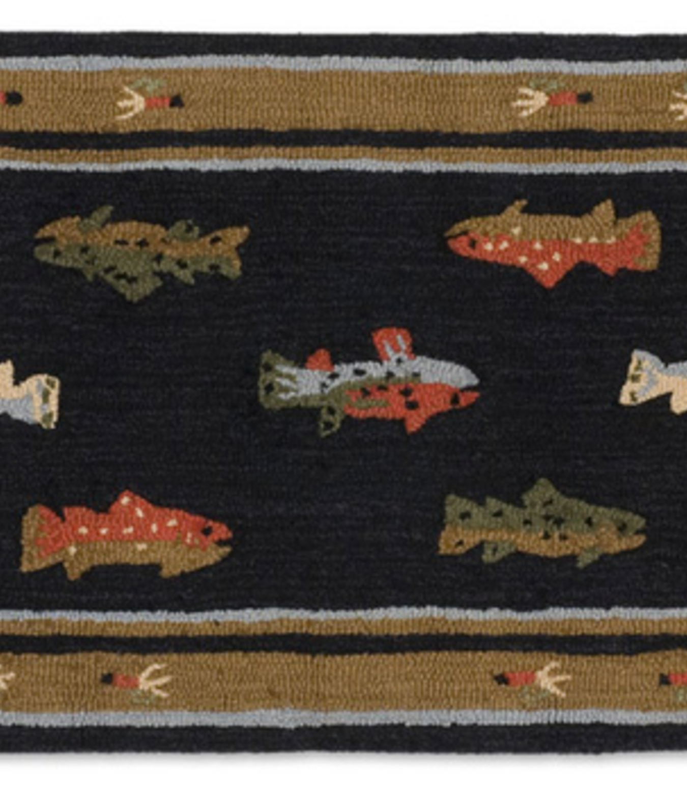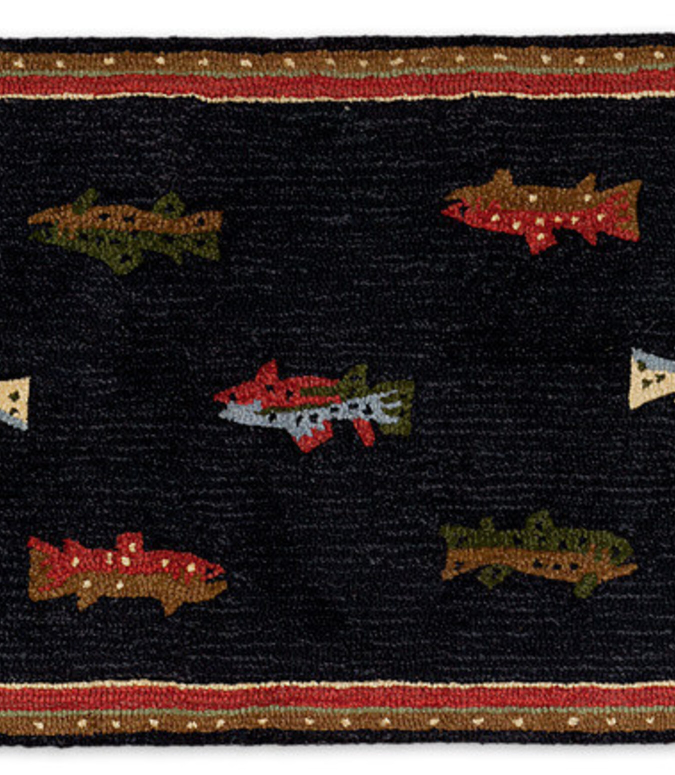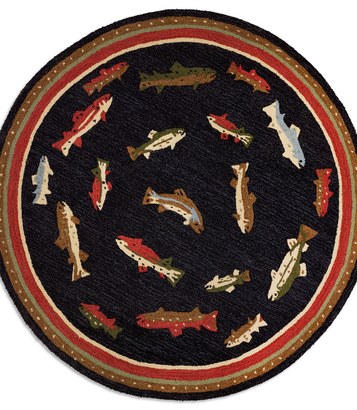 A sampling of river fish dot our favorited hooked rug. A perfect addition to your waterfront home.