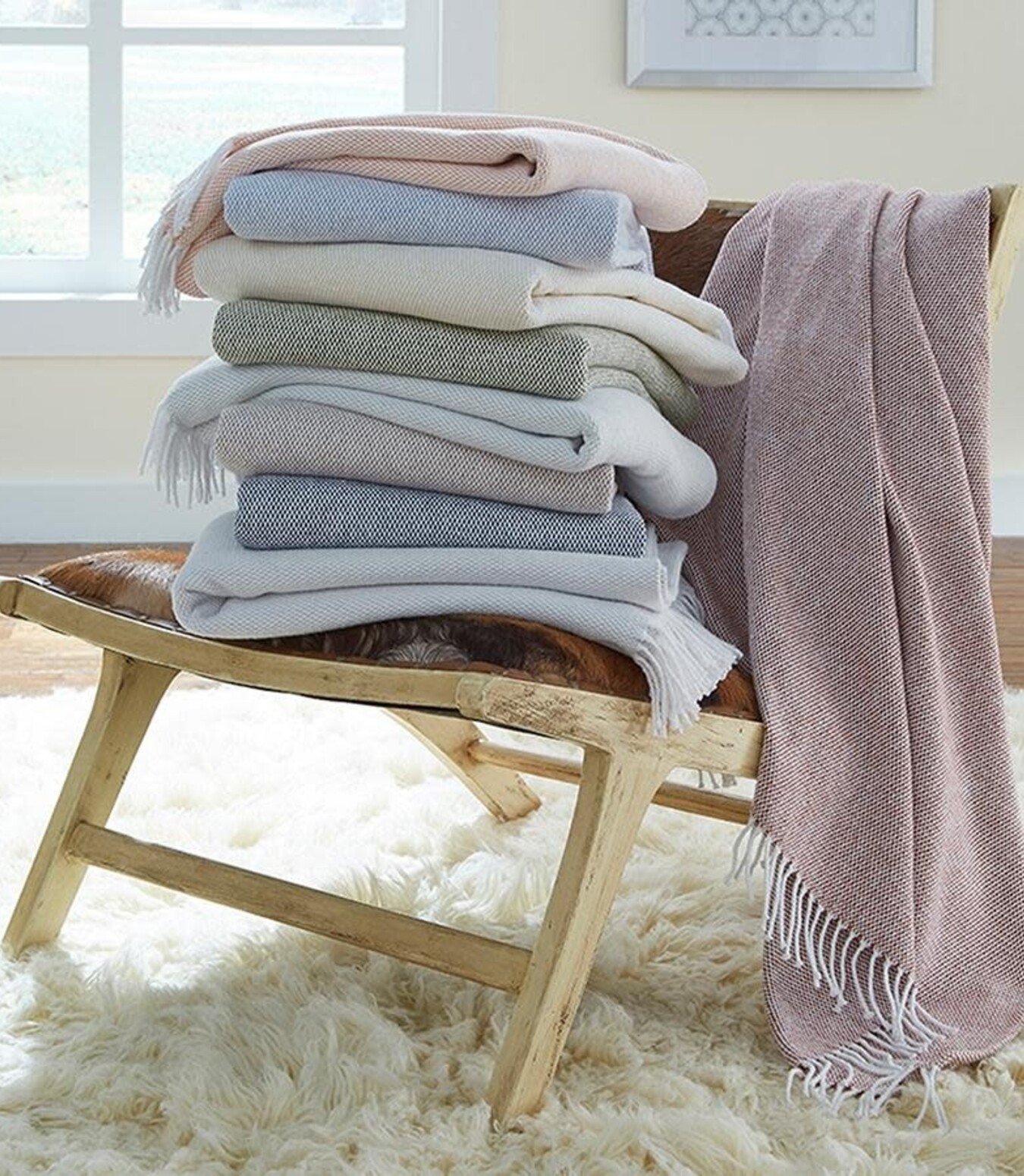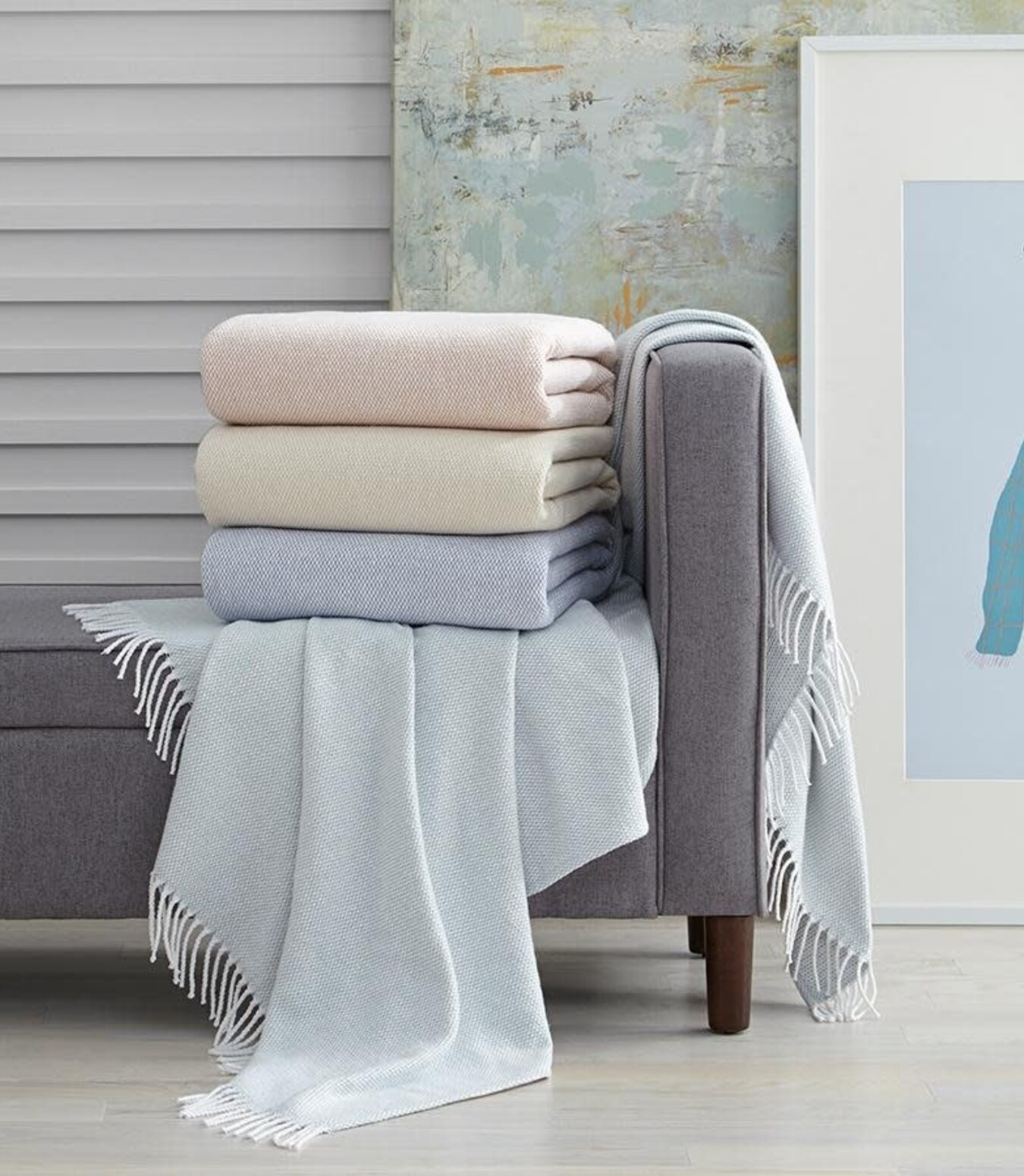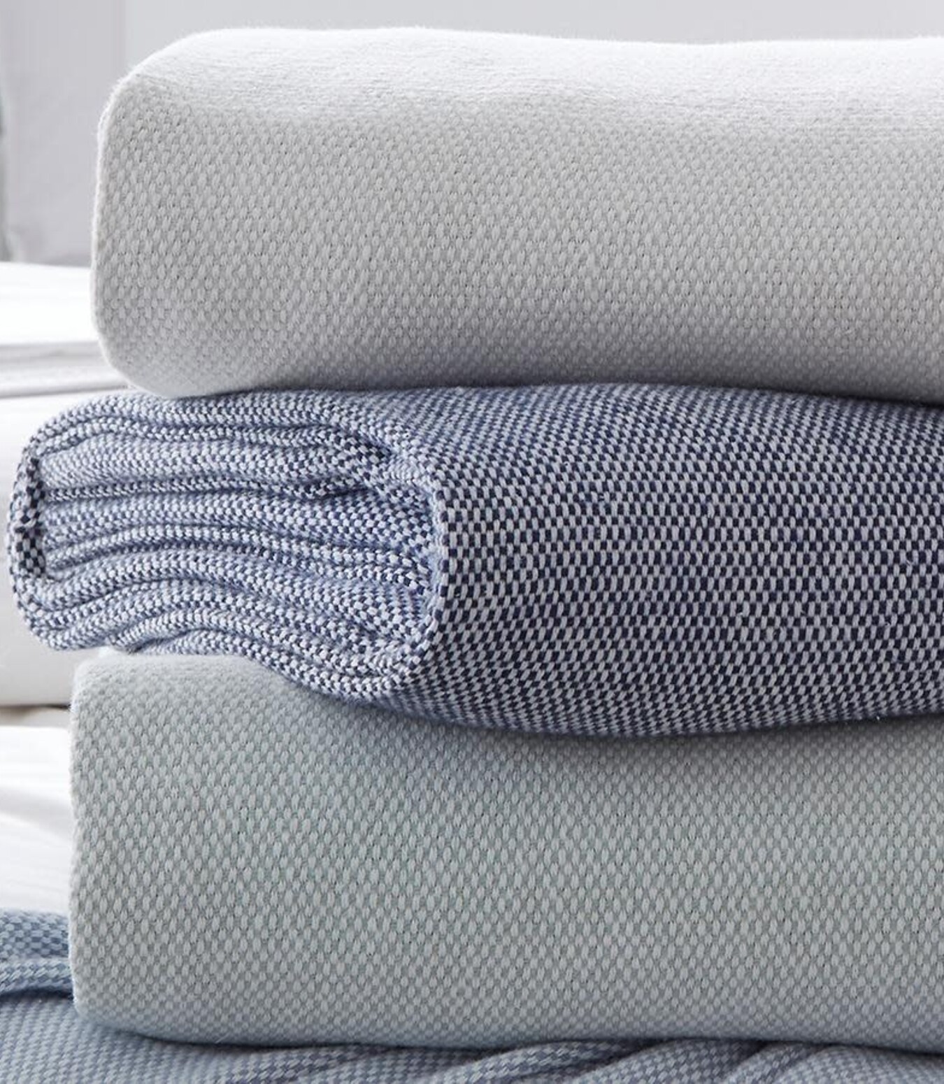 Terzo bed ends and throws feature a classic basket weave pattern in soft, versatile colors that are welcoming in any room. Graceful and elegant, it is crafted from pure cotton and the pillows are filled with feather and down.