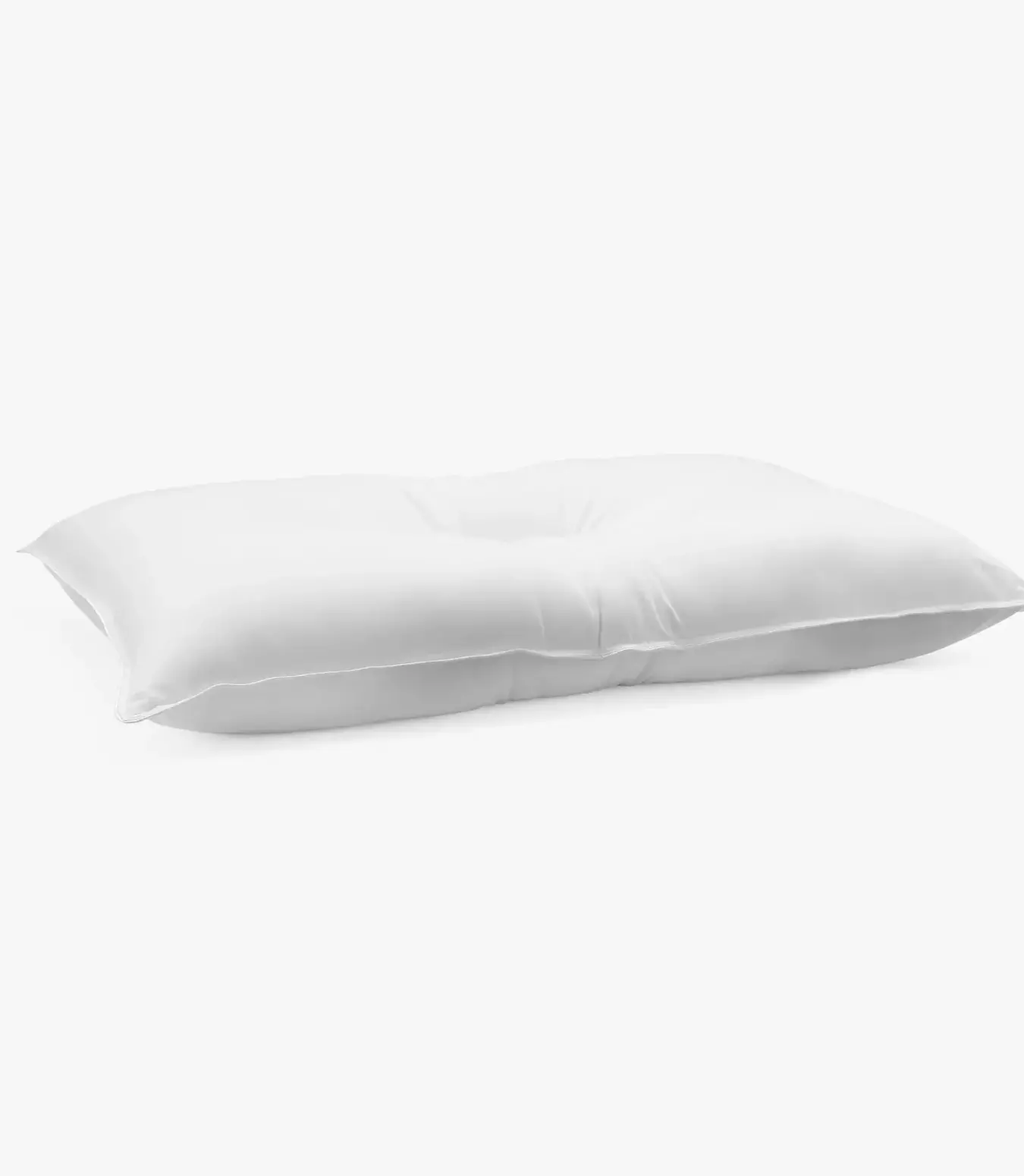 Designed exclusively for back sleepers, The Slumberlicious® Back Sleeper Pillow features a central 4" indentation that provides optimal head support while gently cradling the neck. The under neck channels offer two width options to accommodate varying neck lengths for personalized support. Additionally, the pillow comes with a removable zippered protector that conceals the indentation, providing a seamless appearance.