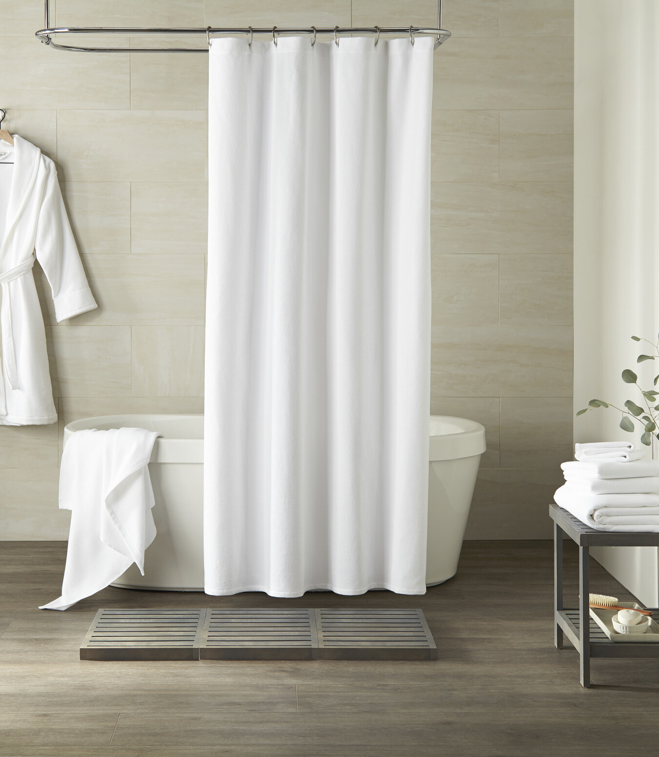 Available in bath towels, hand towels, wash cloths, bath sheets, a shower curtain, and a bathrobe.