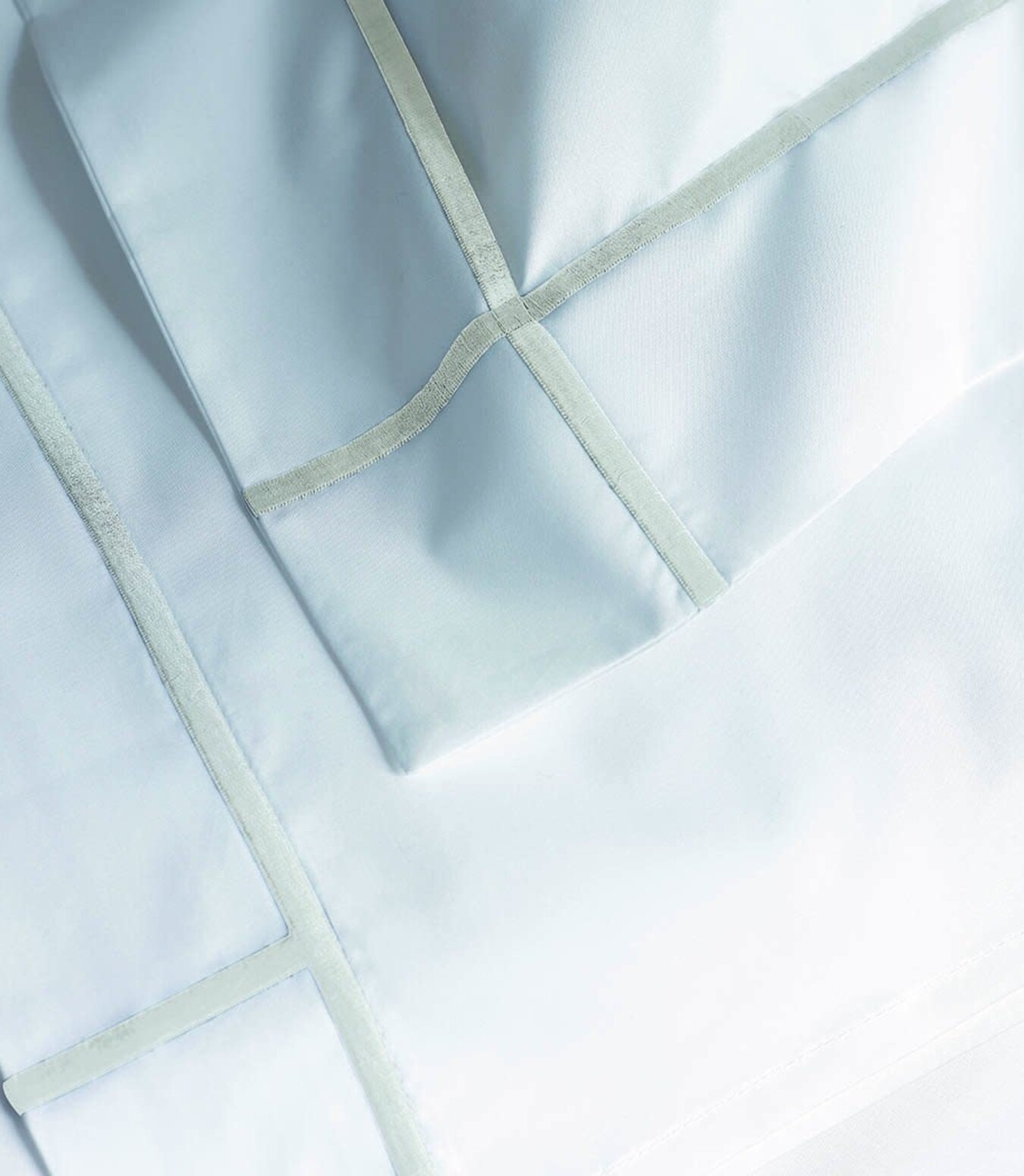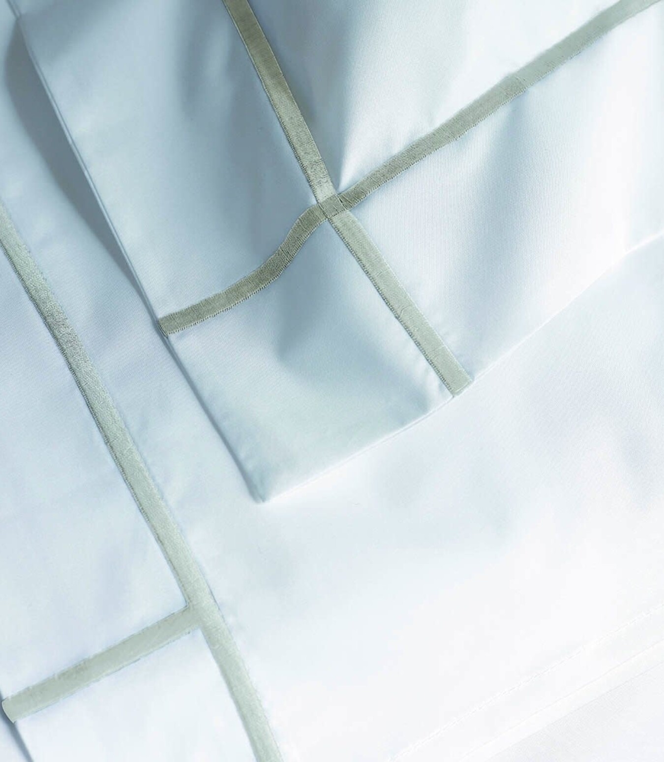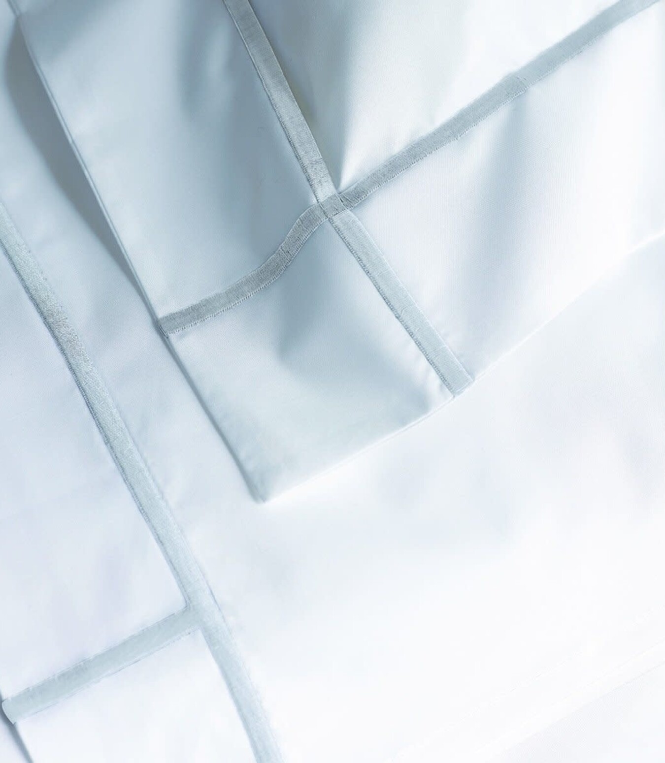 Athena bedding blends traditional elegance with new fashioned style. It is the interplay of a white background against the graphic perfection of intersecting stripes. Classic white Egyptian combed cotton in 500 thread count percale features bourdon-stitched borders that extend vertically and horizontally for a modern, edge-of-the horizon look. These linens offer a perfect canvas for monograms, making them ideal for a wedding gift or trousseau. Luxury percale.