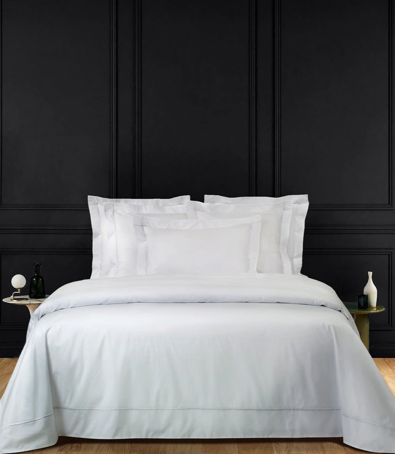Egyptian Combed Cotton, Solid Percale, 500 TC. Available in 10 colors: Blanc, Caramel, Glace, Nacre, Opera, Pierre, Blush, Honey, Platine & Silver.